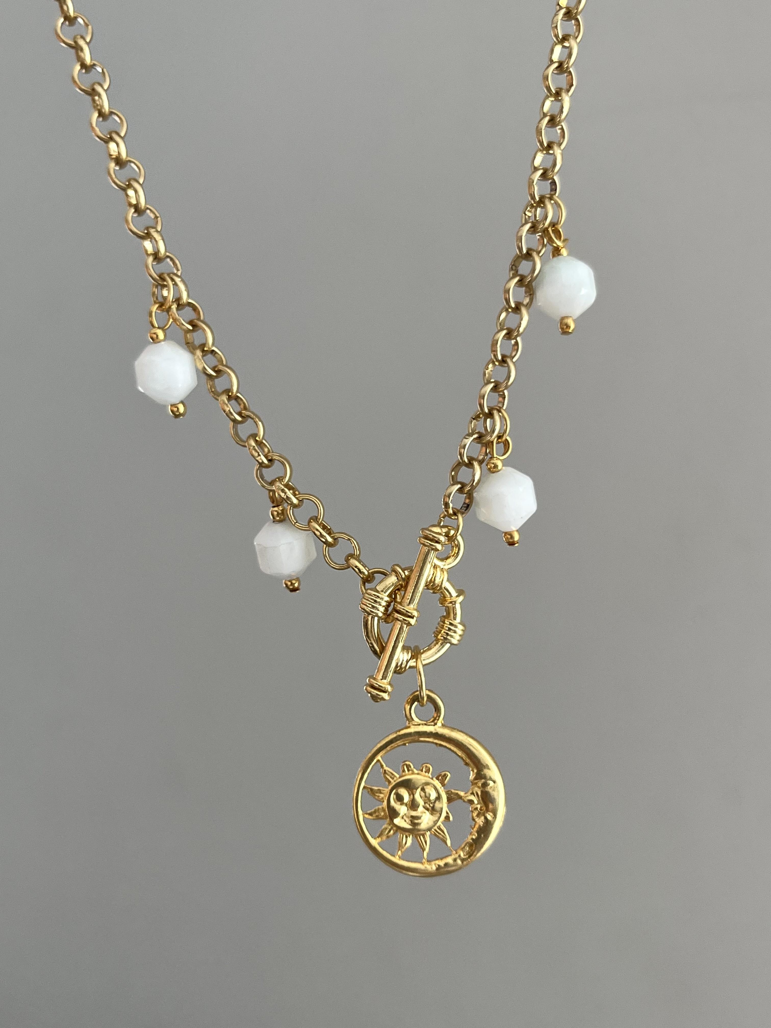 Altın Kaplama Beyaz Güneş Ve Ay Kolye 65cm