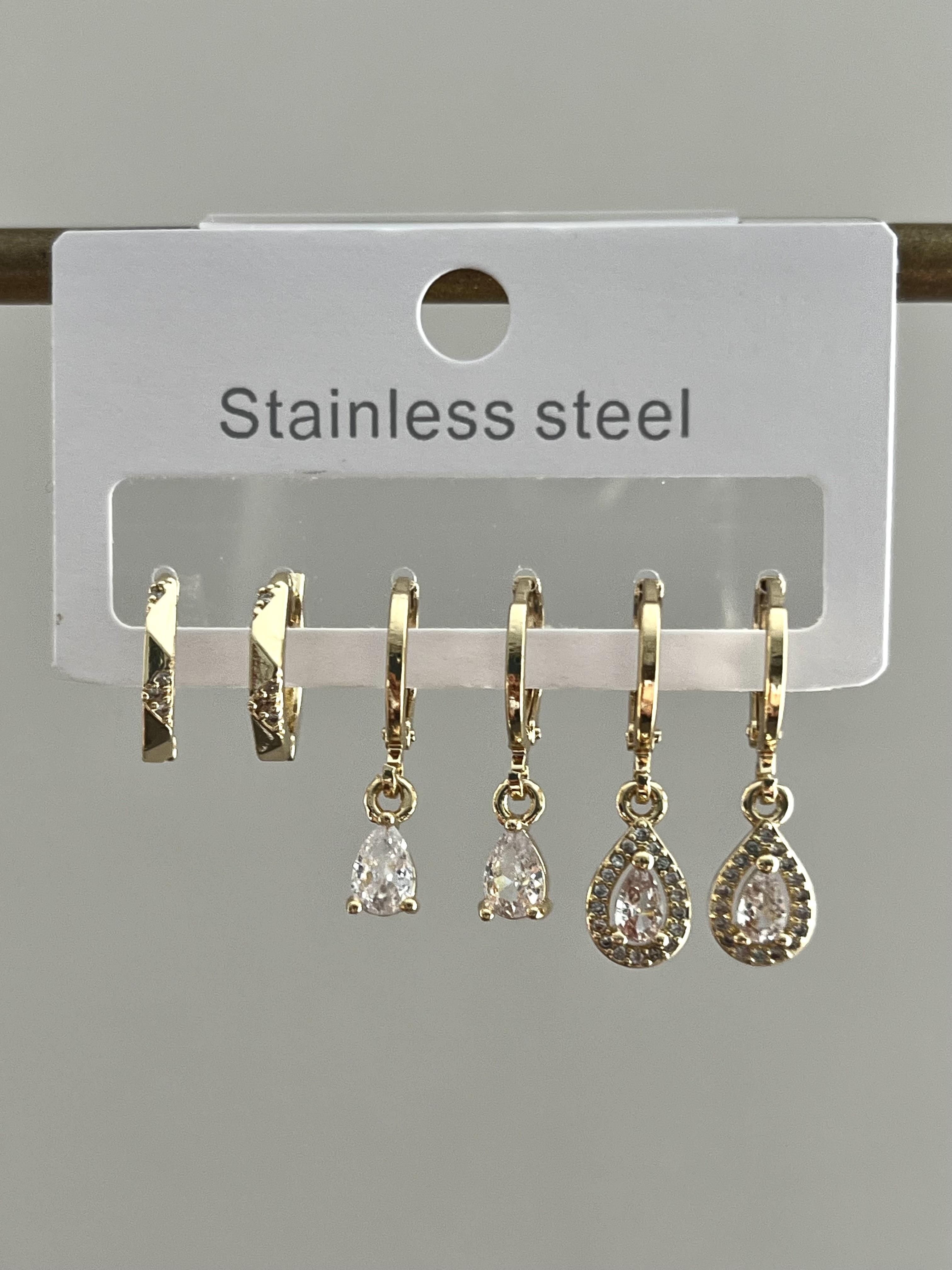 Çelik 6’lı Gold Damla Taş Küpe