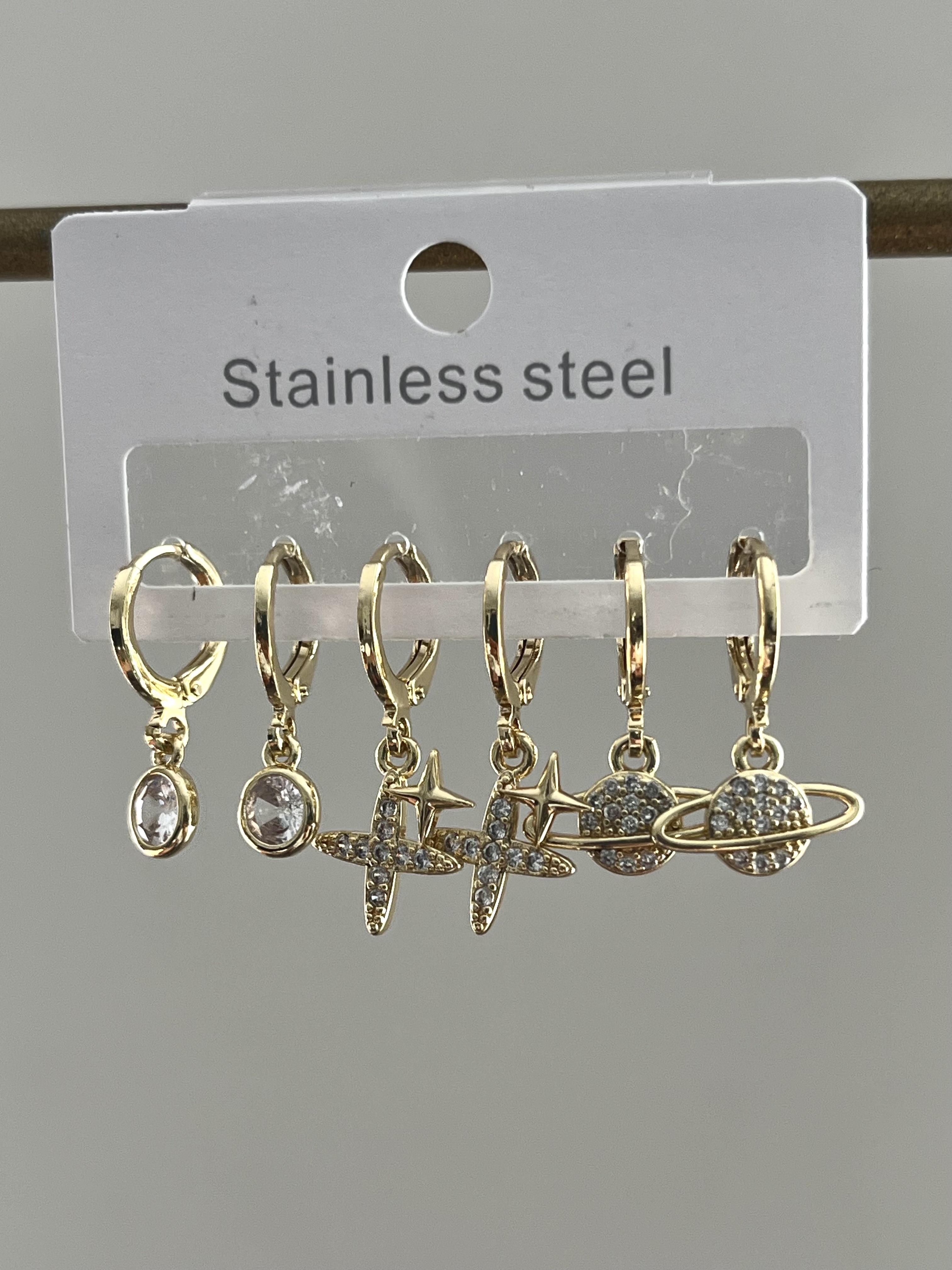 Çelik 6’lı Gold Gezegen-Yıldız Küpe