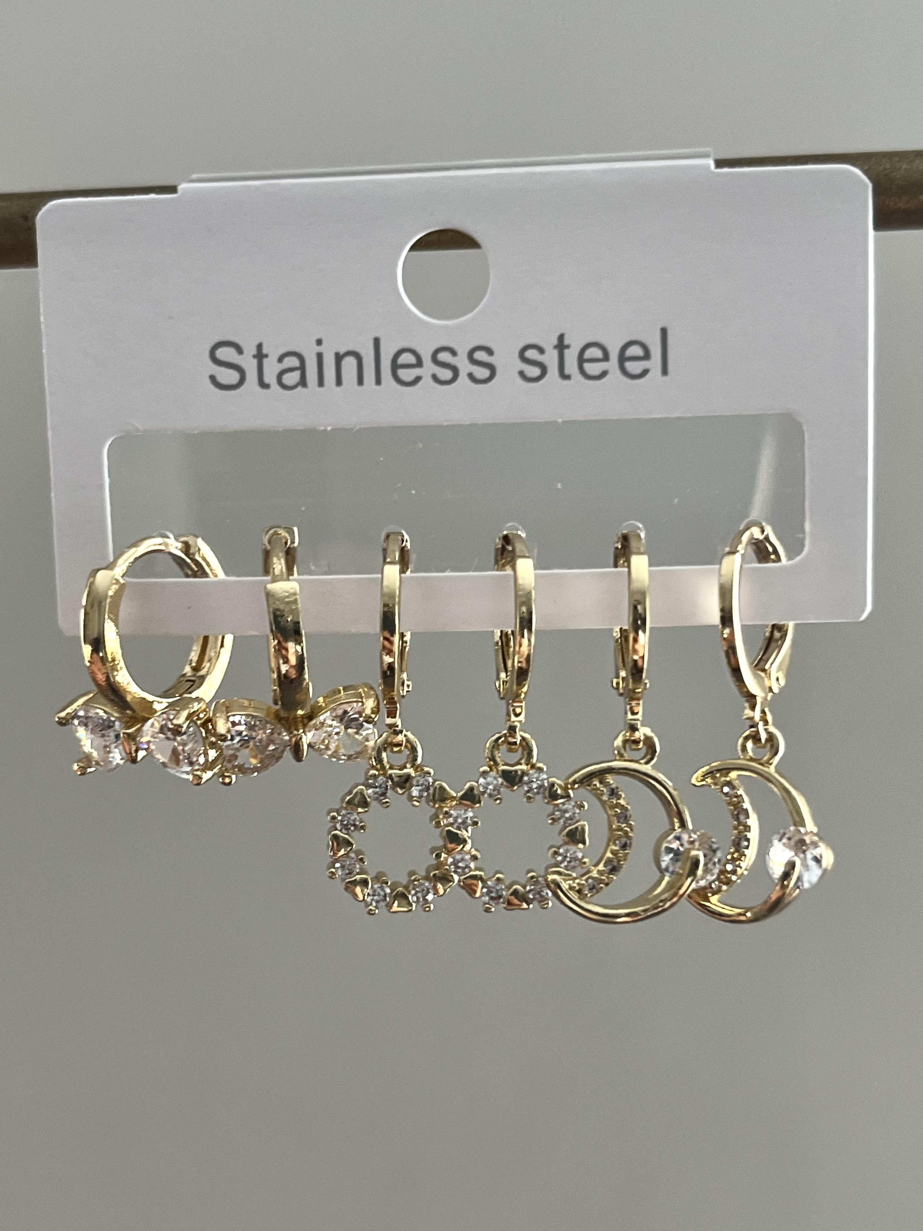 Çelik 6’lı Gold Taşlı Ay Küpe