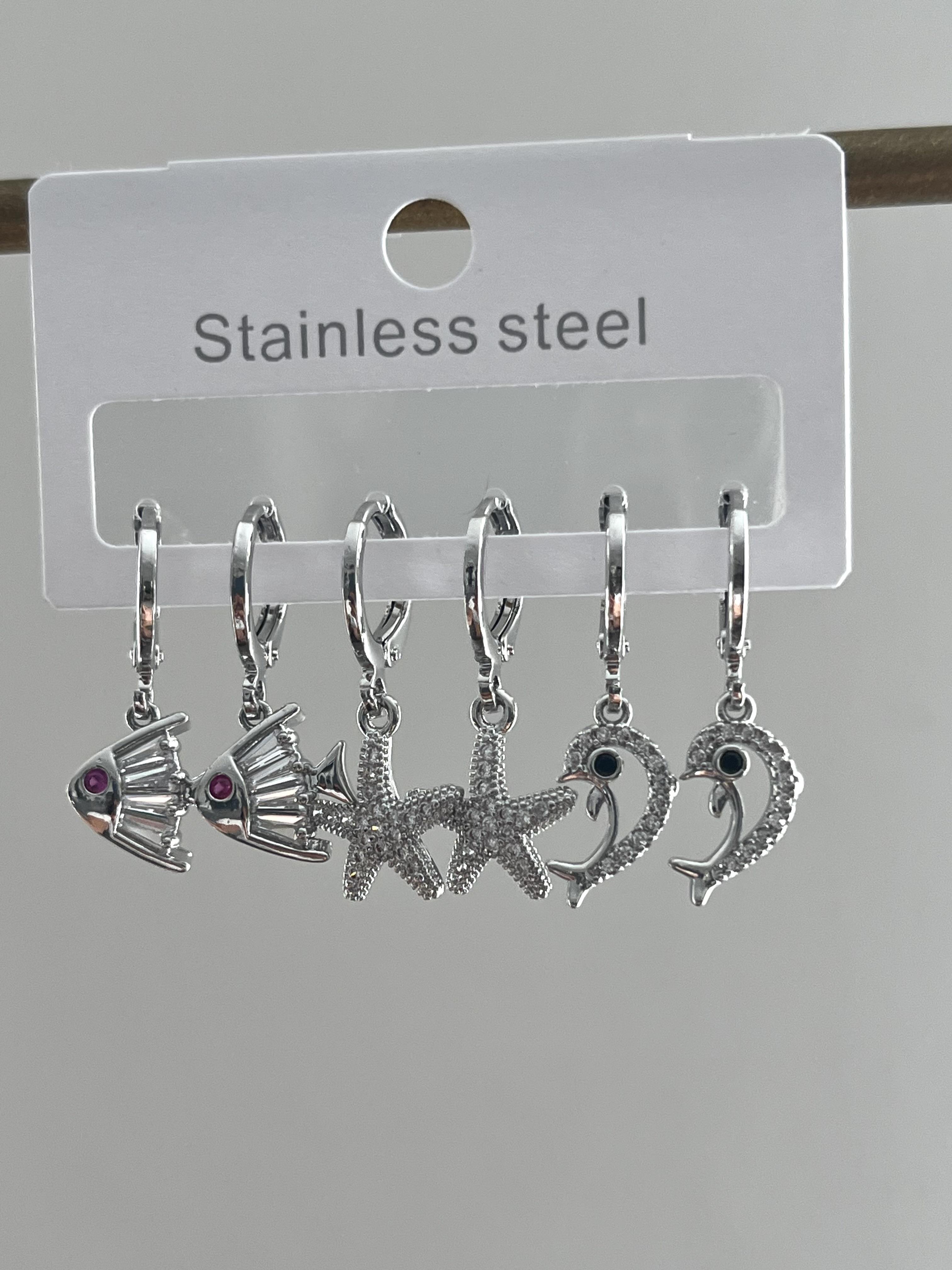 Çelik 6’lı Silver Deniz Yıldızı-Balık Küpe
