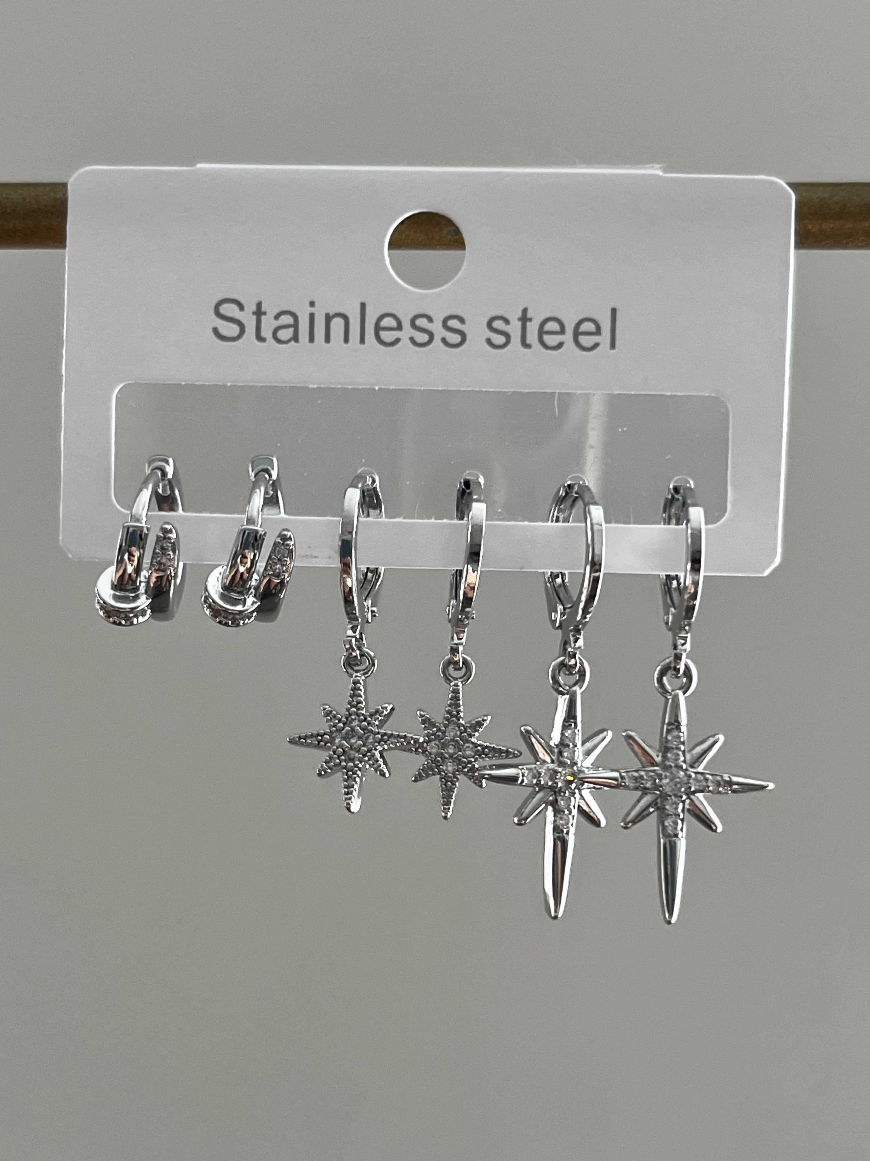 Çelik 6’lı Silver Kutup Yıldızı Küpe