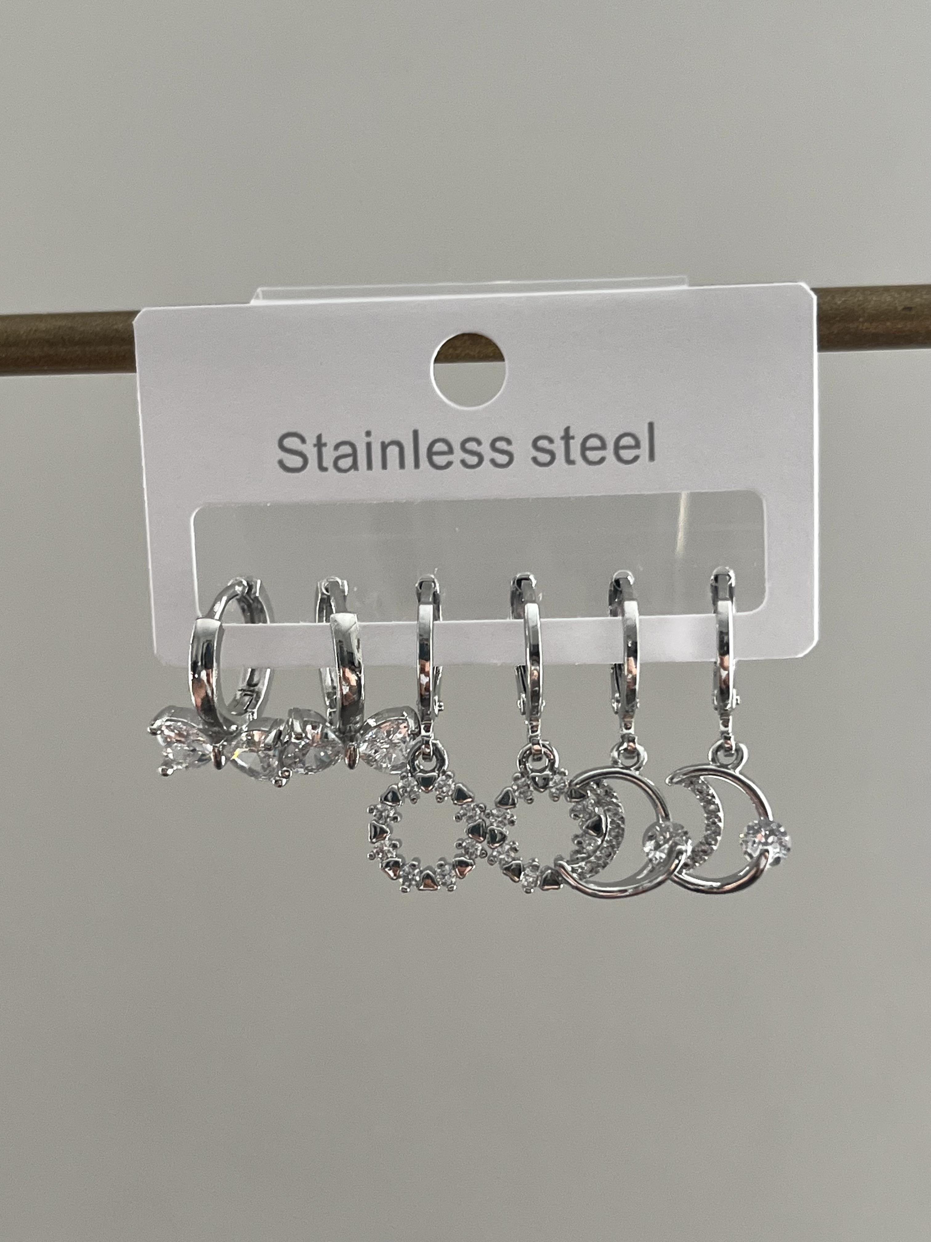 Çelik 6’lı Silver Taşlı Ay Küpe