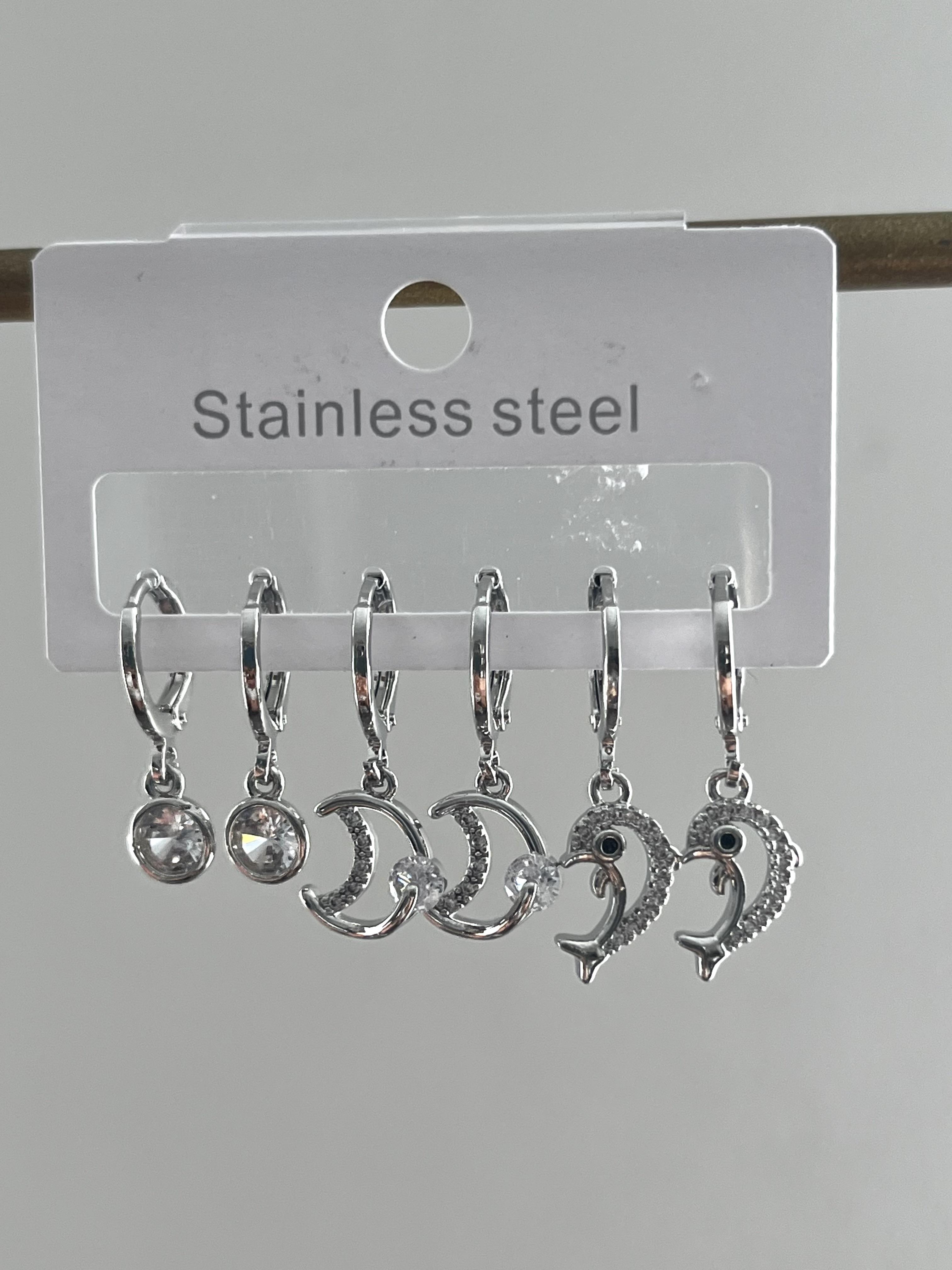 Çelik 6’lı Silver Yunus Balığı Küpe