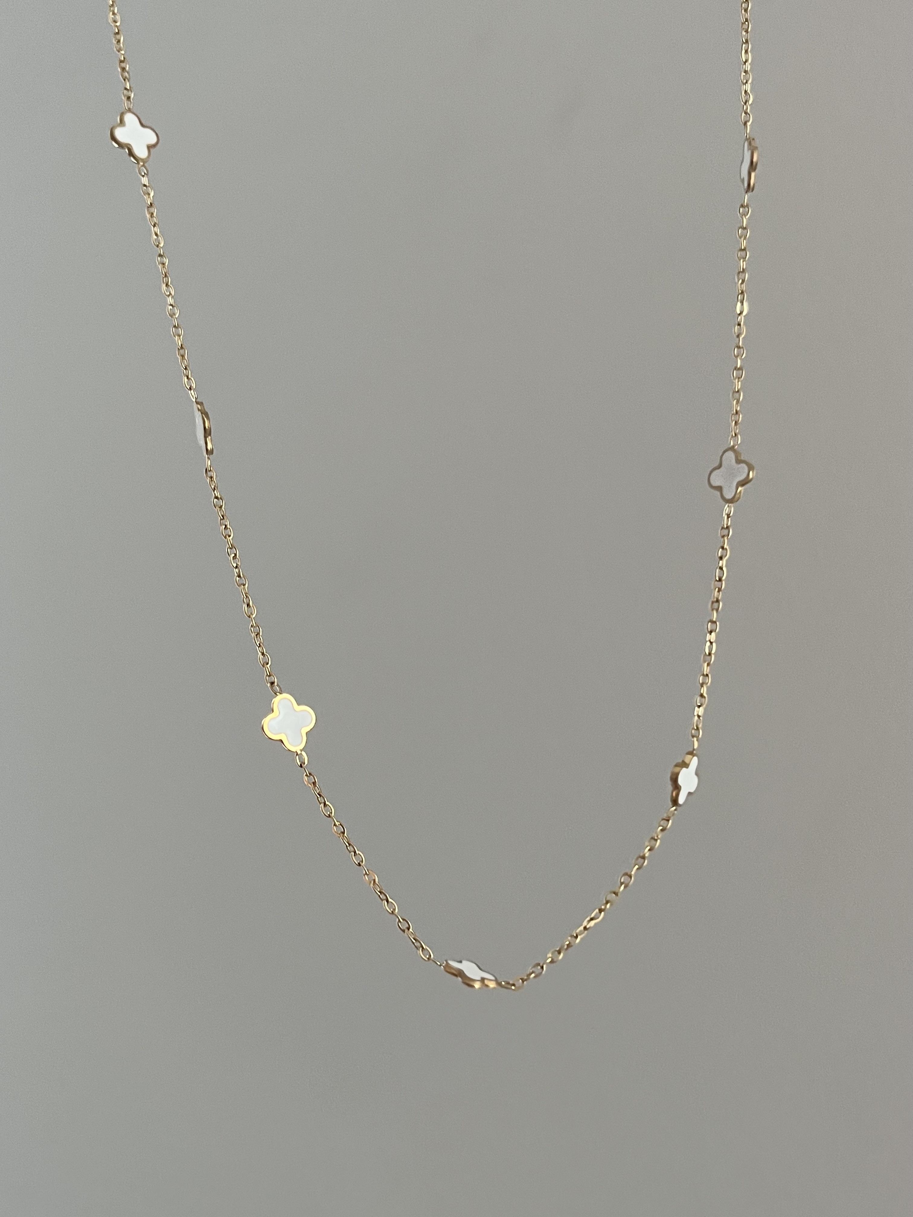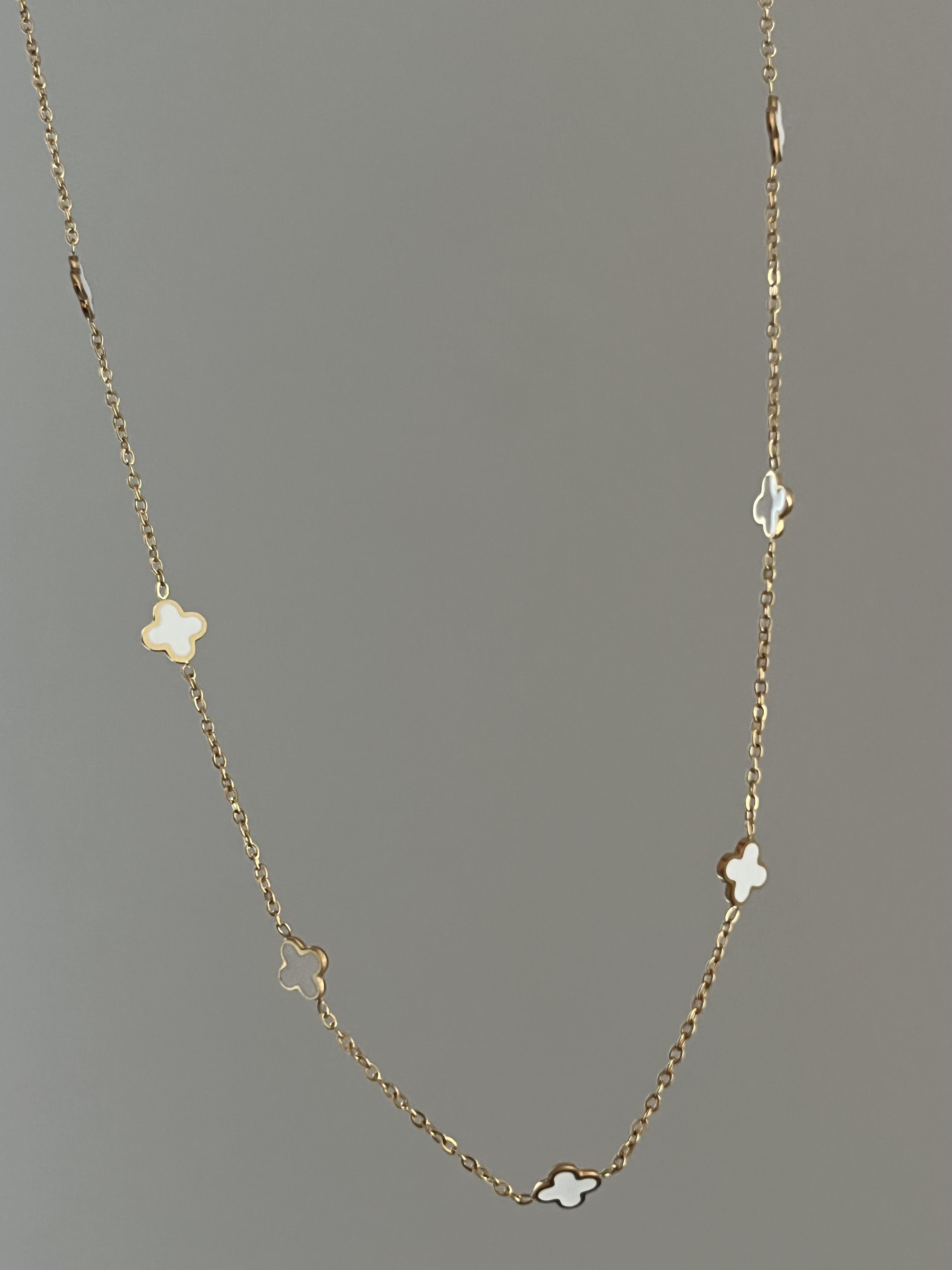 Çelik 7 Beyaz Mini Yoncalı Kolye