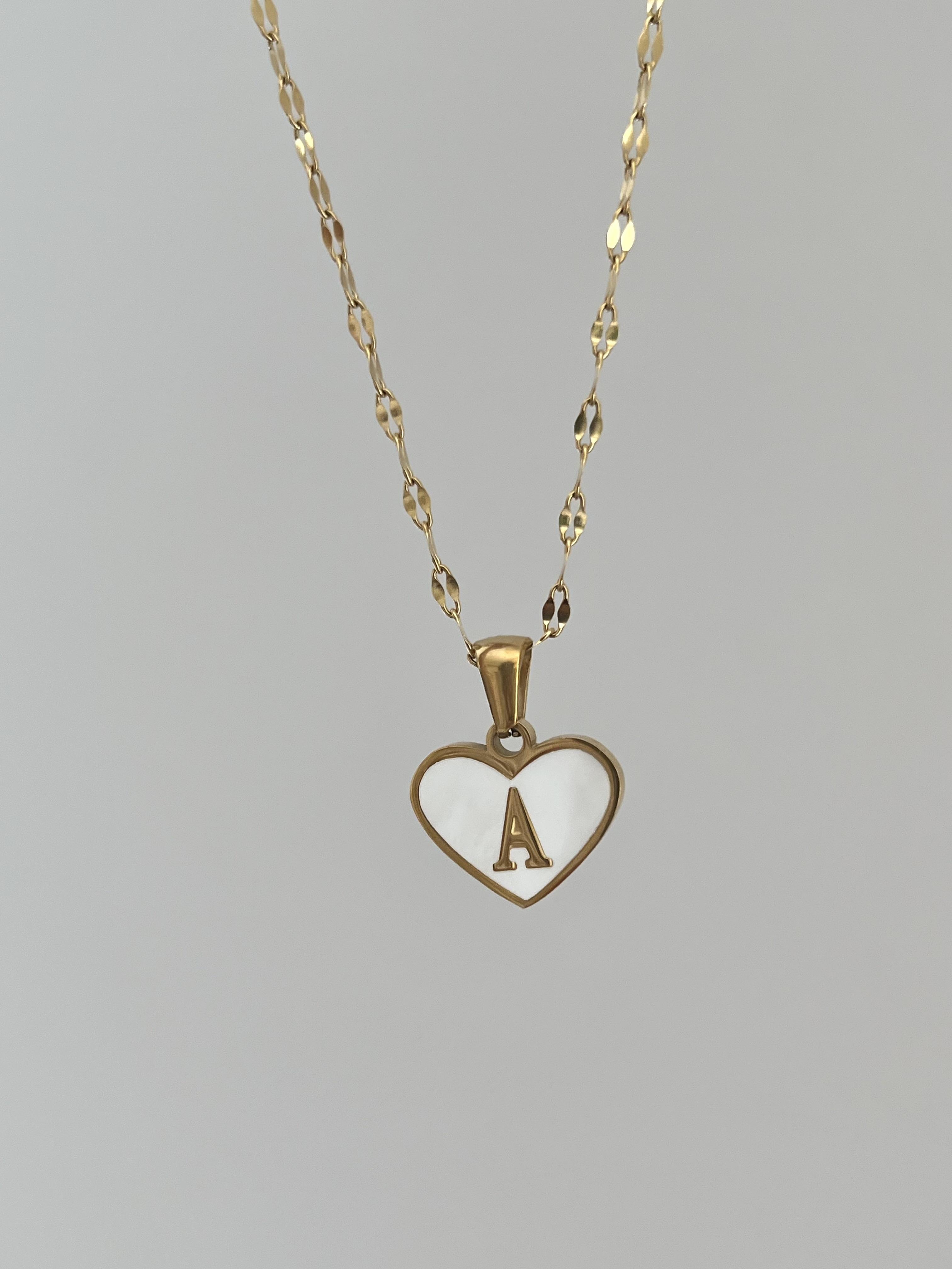 Çelik A Harf Kalp Kolye