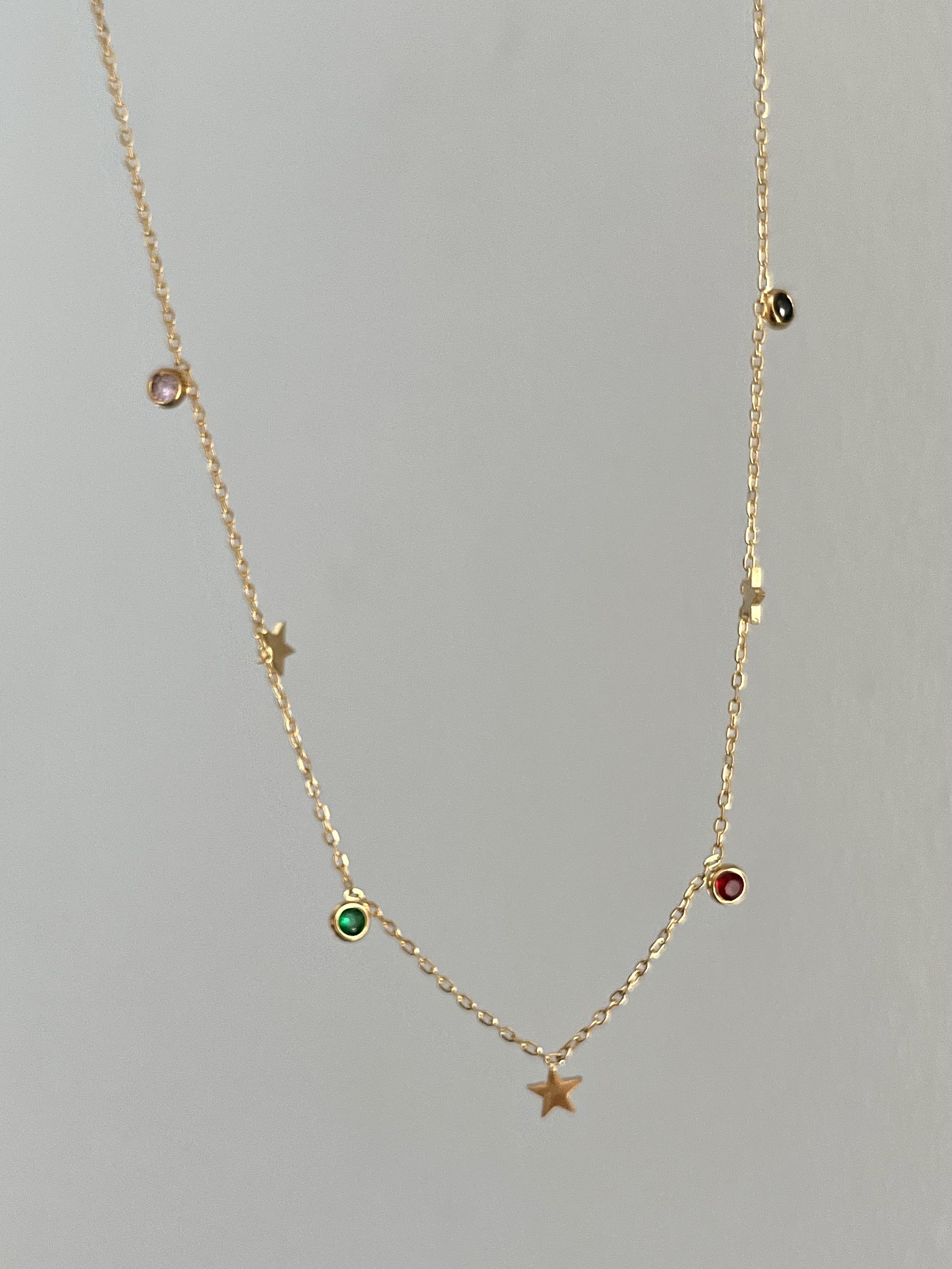 Çelik Çoklu Taş Detaylı Yıldız Kolye
