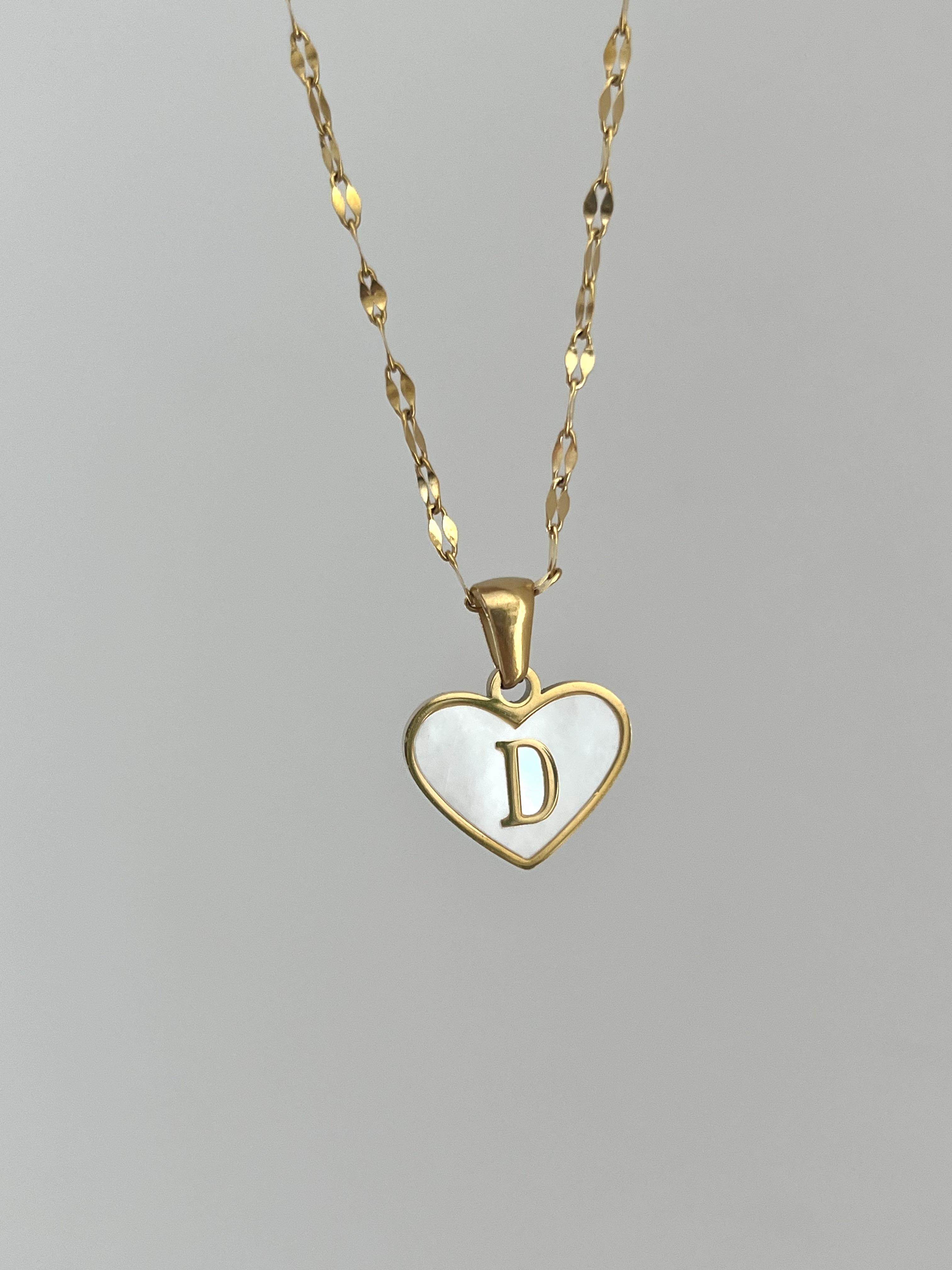 Çelik D Harf Kalp Kolye