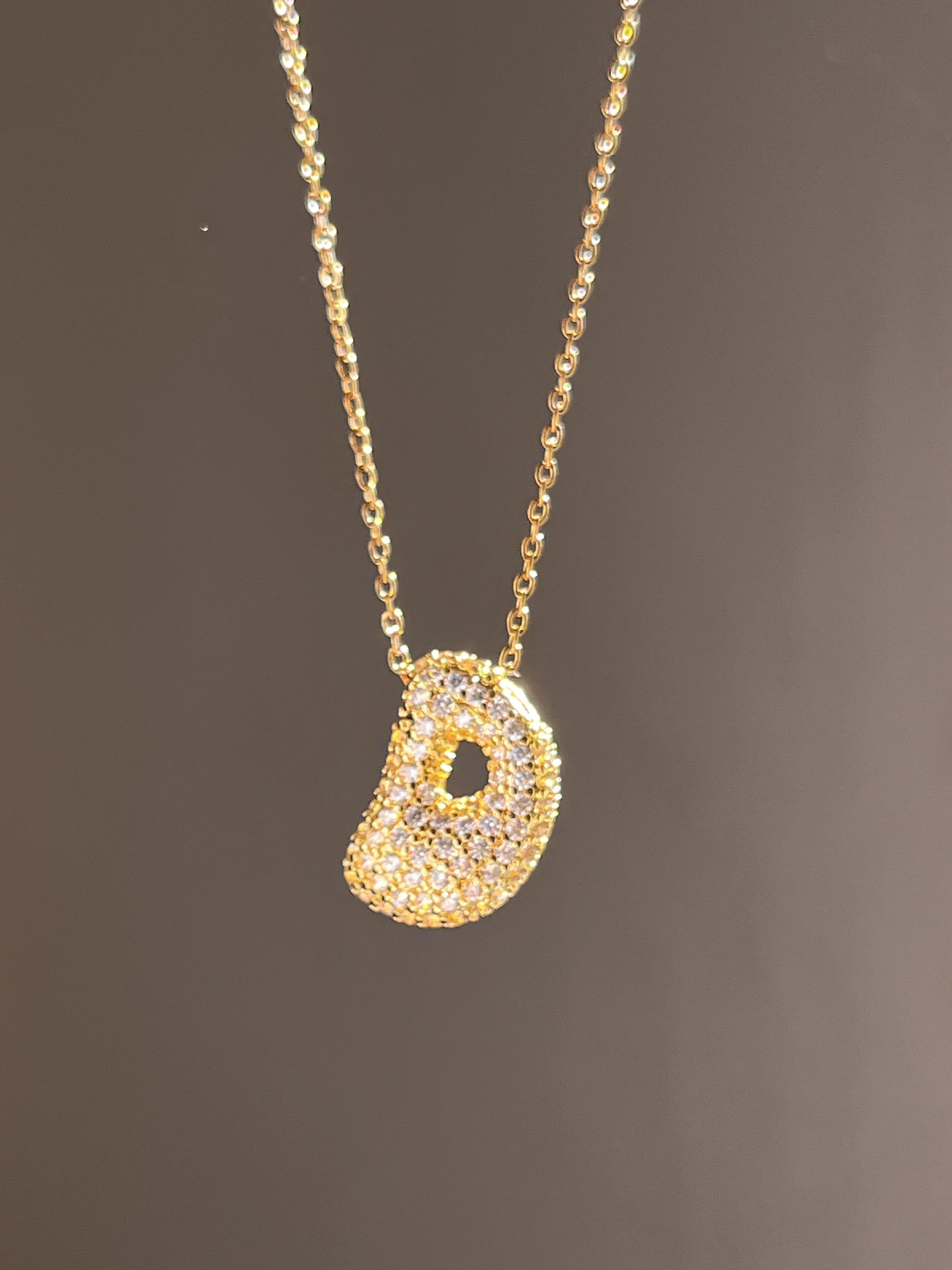 Çelik D Taşlı Balon Harf Kolye