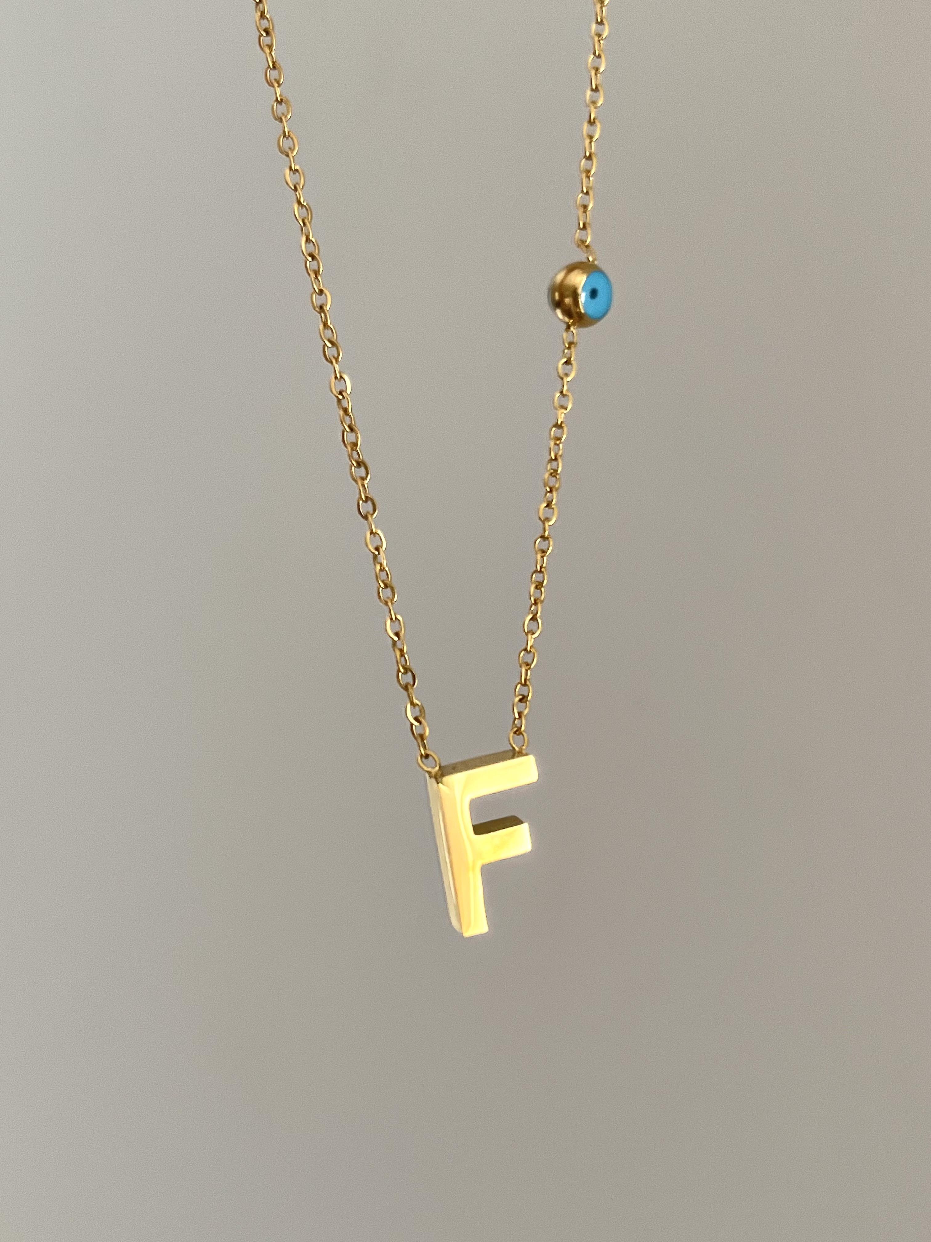 Çelik F Harf Minimal Gold Kolye