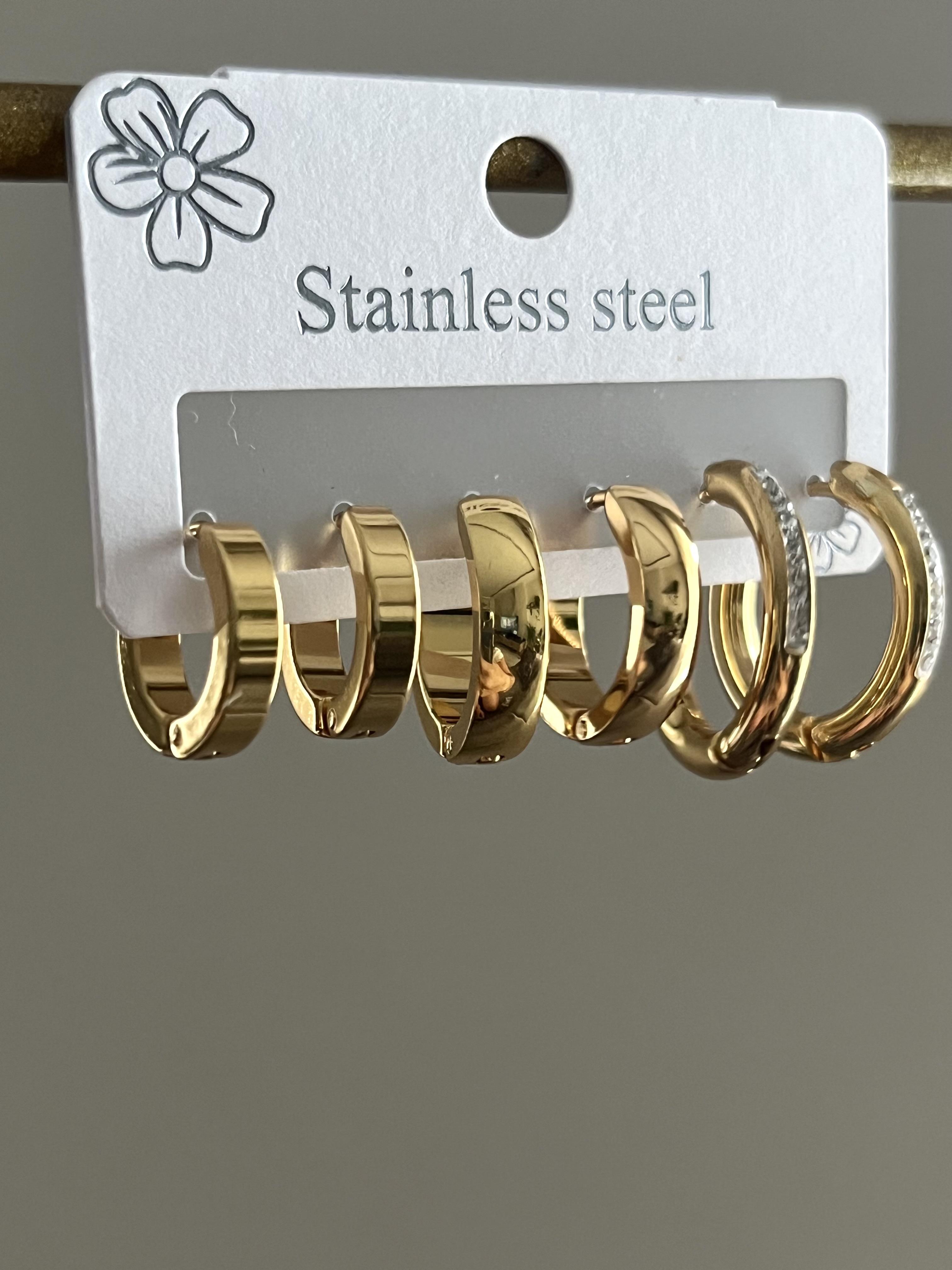 Çelik Gold 6’lı Taşlı Mini Halka Küpe