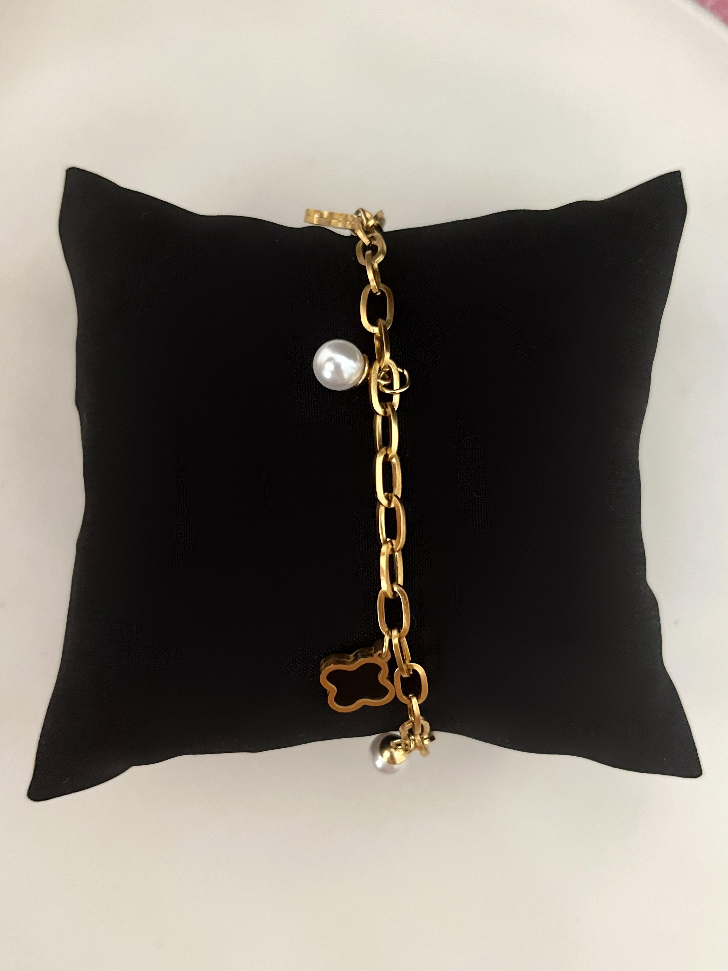 Çelik İnci ve Siyah Yonca Bileklik