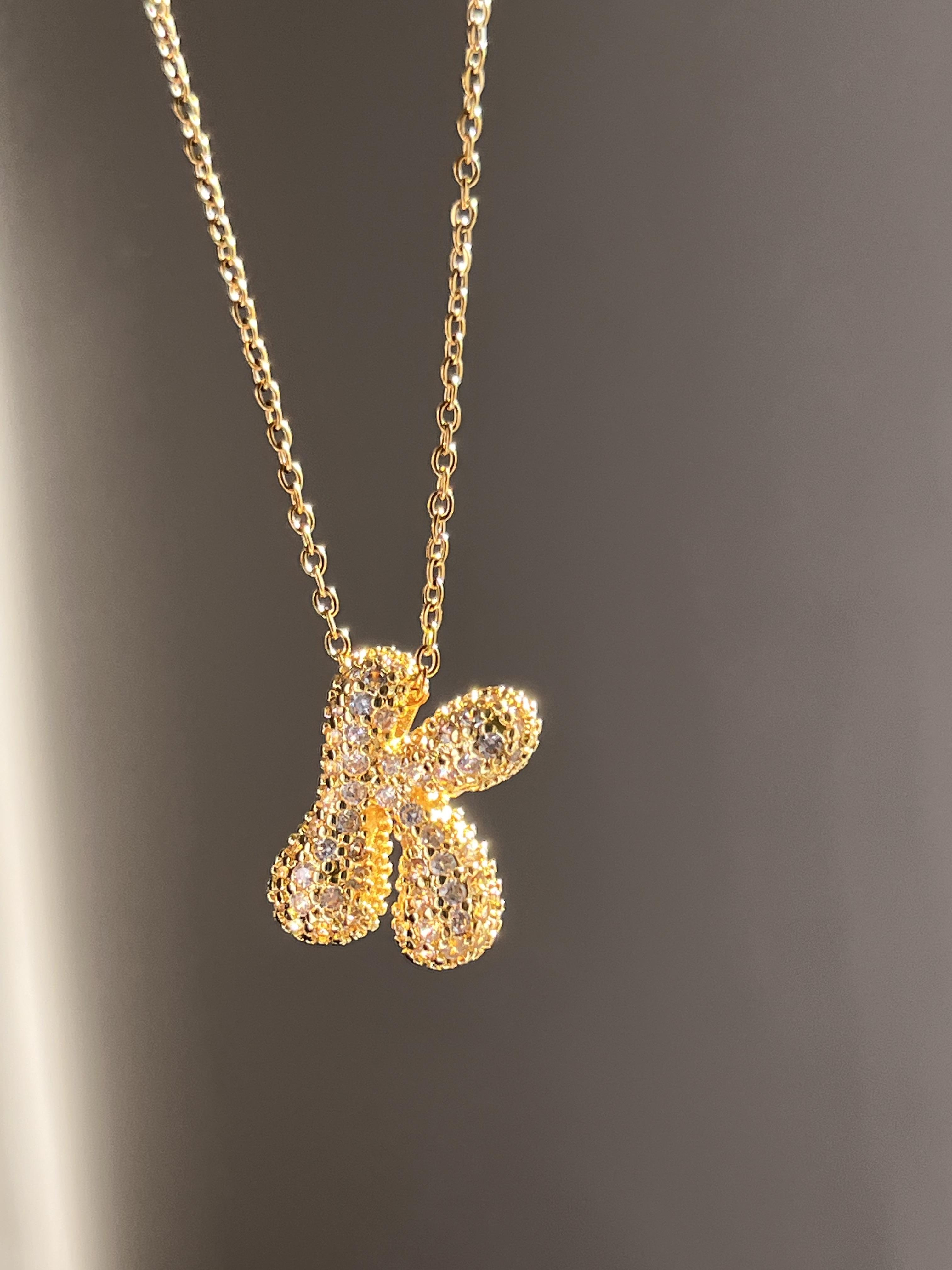 Çelik K Taşlı Balon Harf Kolye
