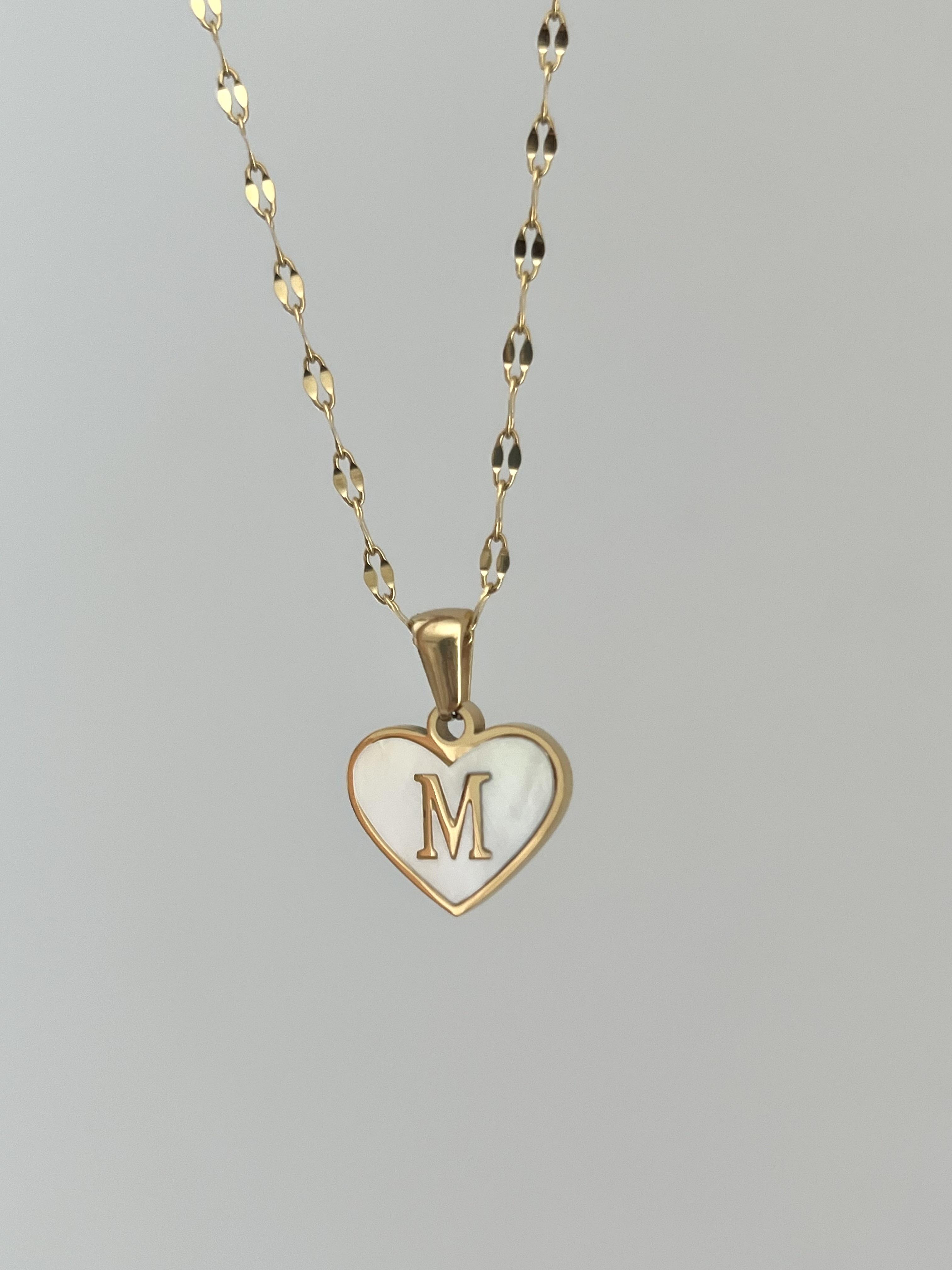 Çelik M Harf Kalp Kolye