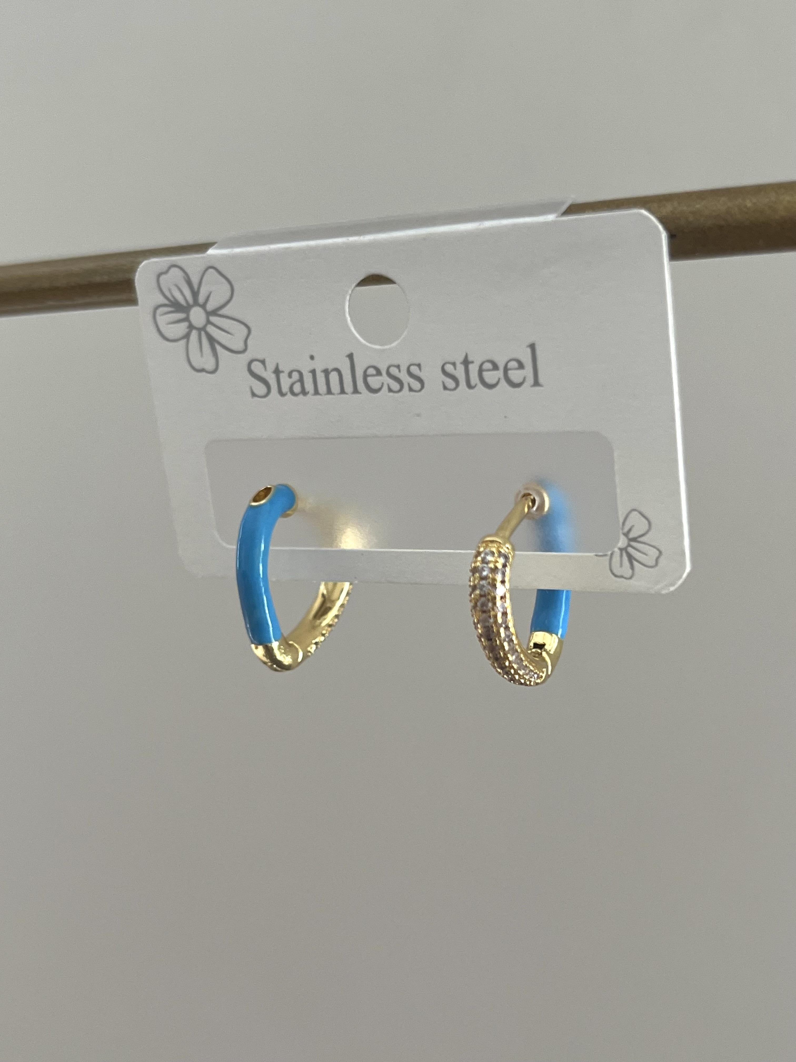 Çelik Mavi Kalp Küpe