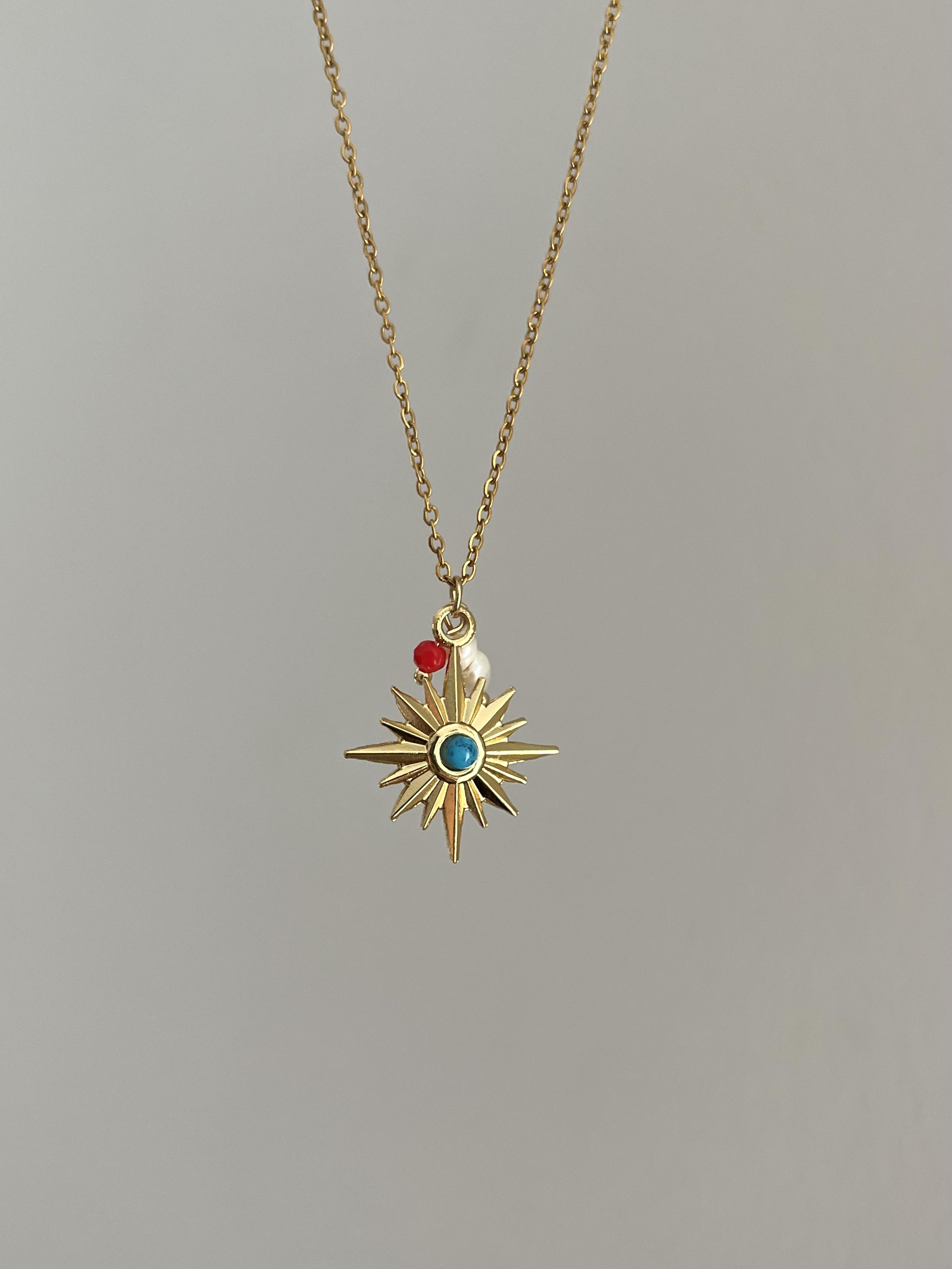 Çelik Mavi Taşlı Kutup Yıldızı Kolye