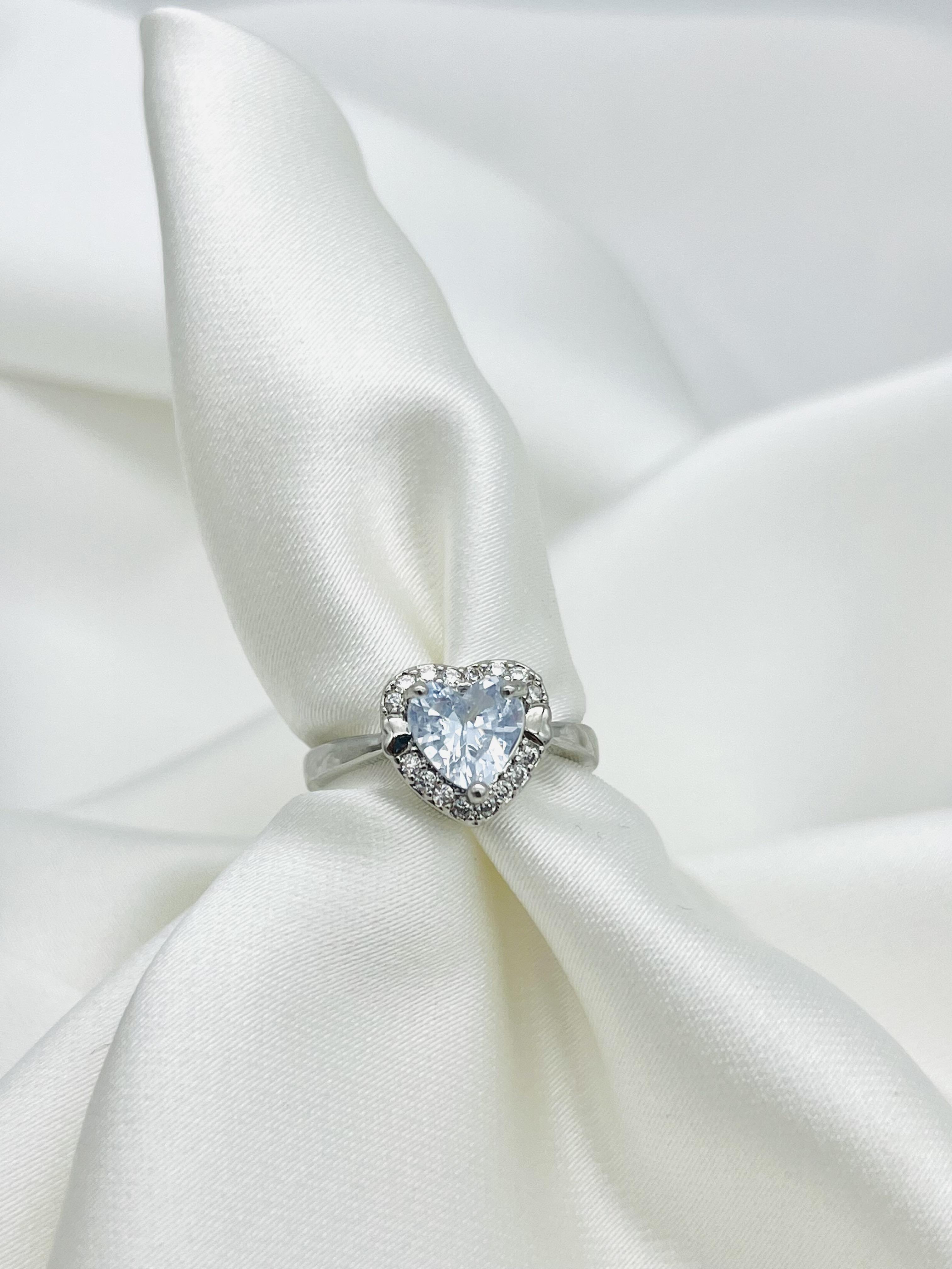 Çelik Silver Açık Mavi Kalp Yüzük