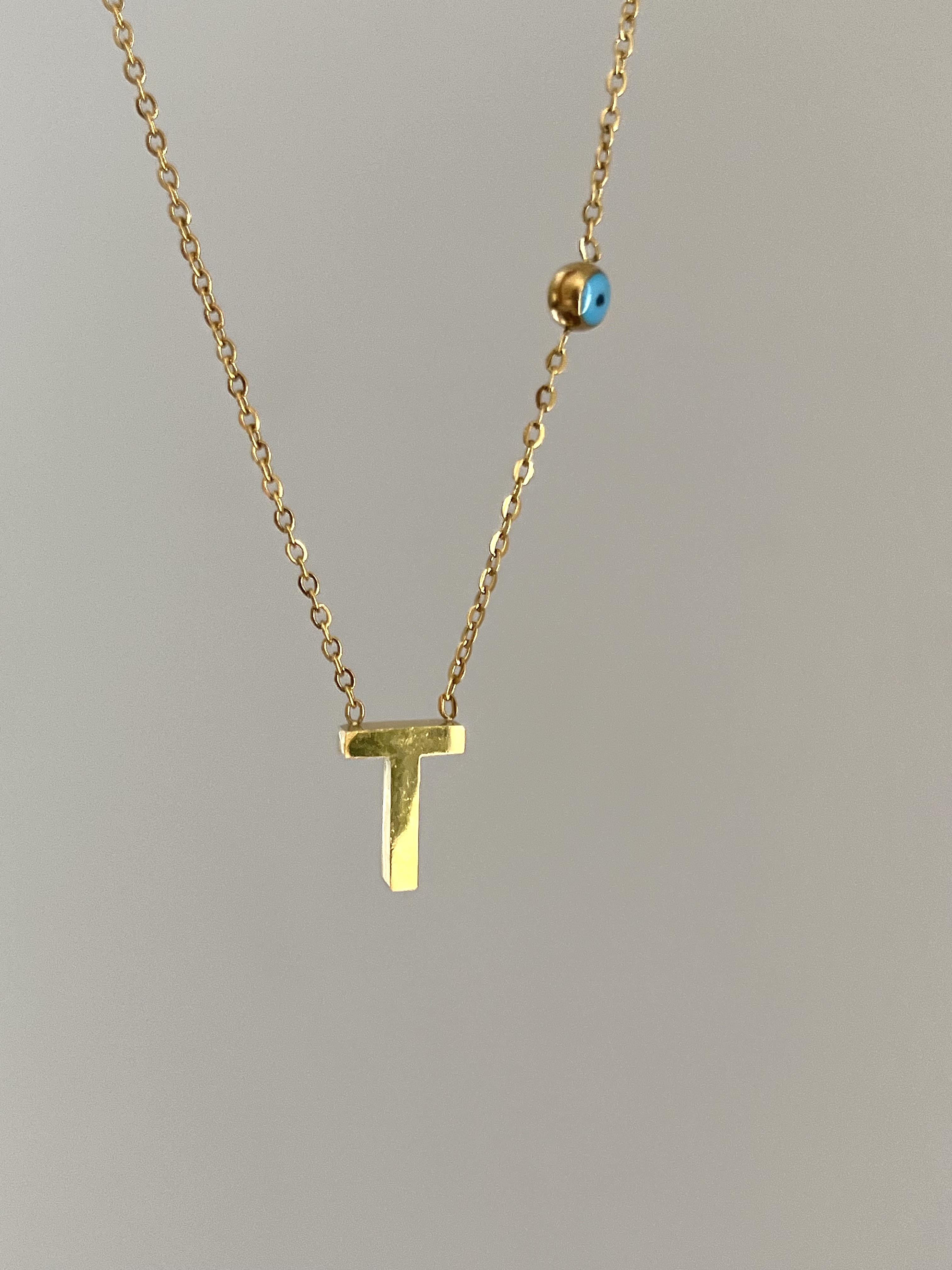 Çelik T Harf Minimal Gold Kolye