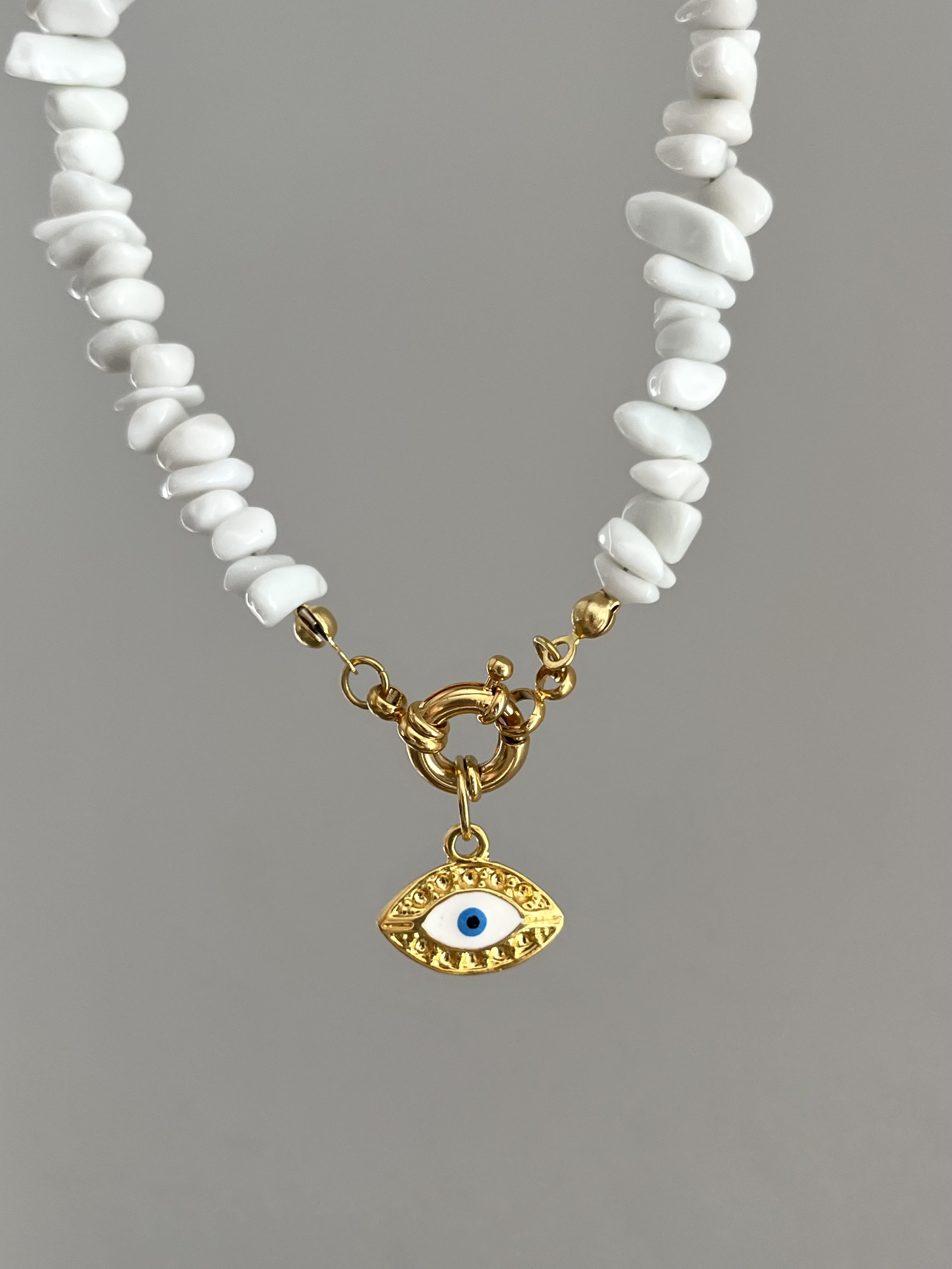 Doğaltaş Beyaz Göz Kolye 50cm
