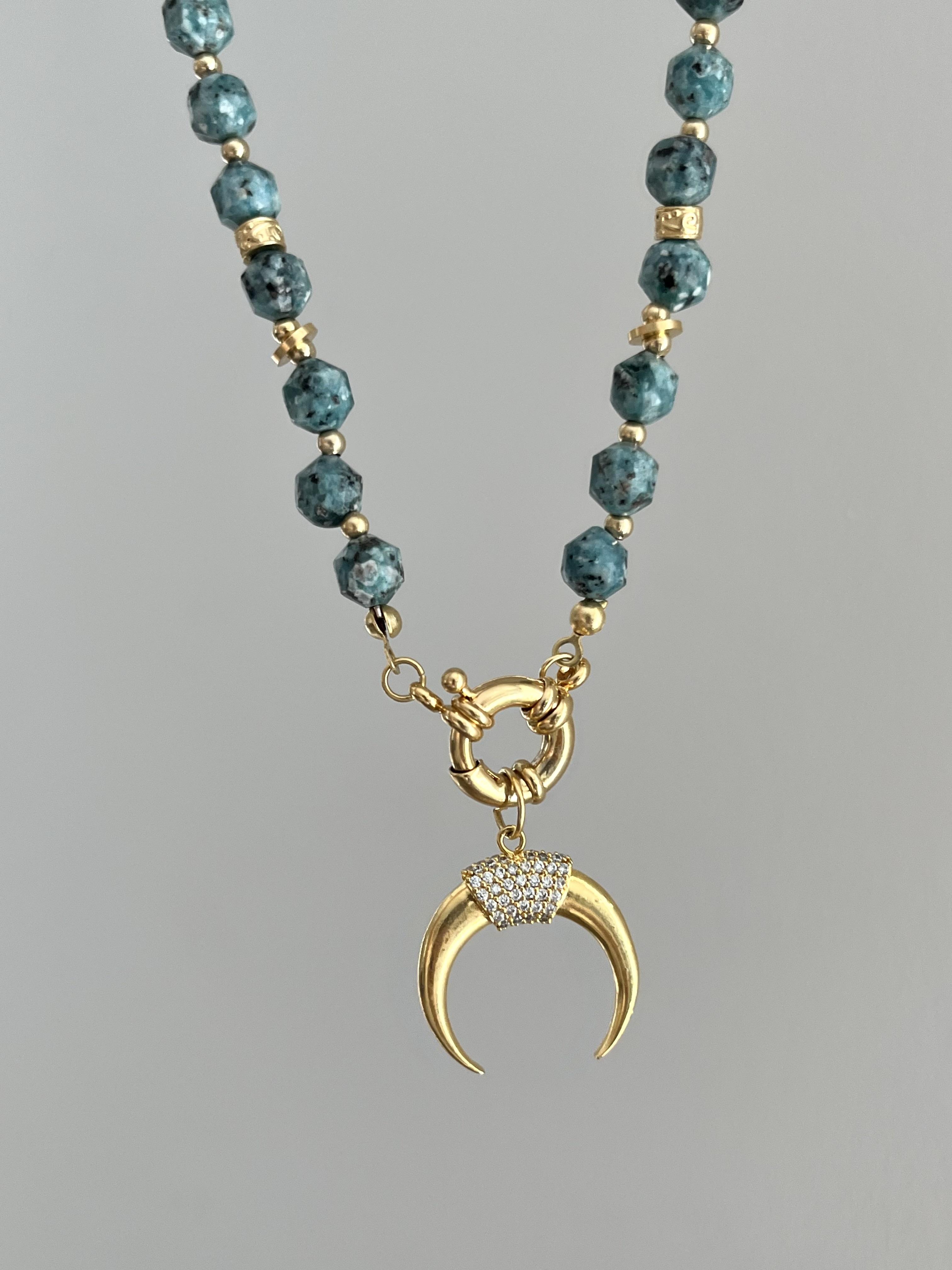 Doğaltaş Yeşil Ay Detaylı Kolye 50cm