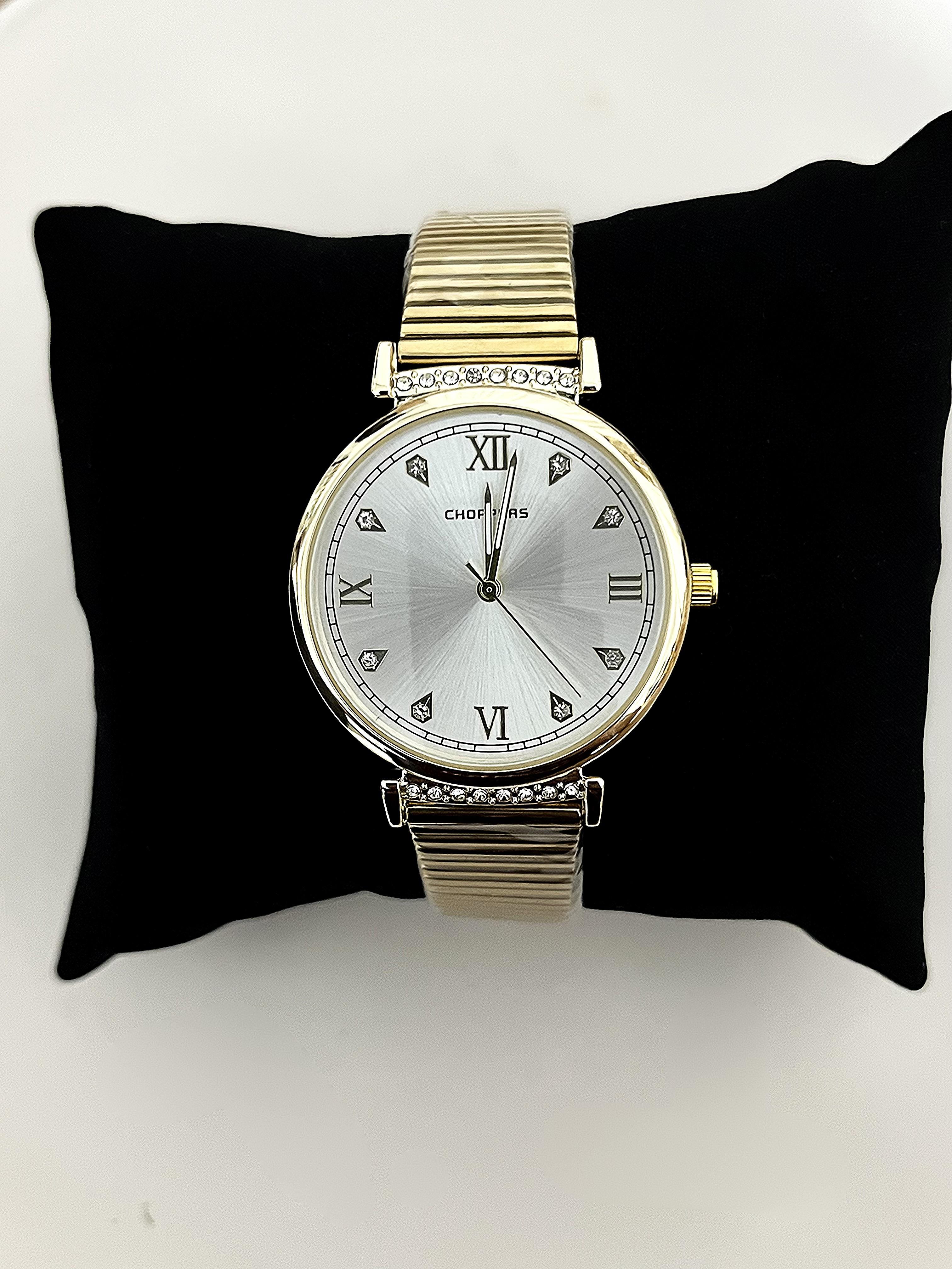 Gold Taş Detaylı Büyük Yuvarlak Saat