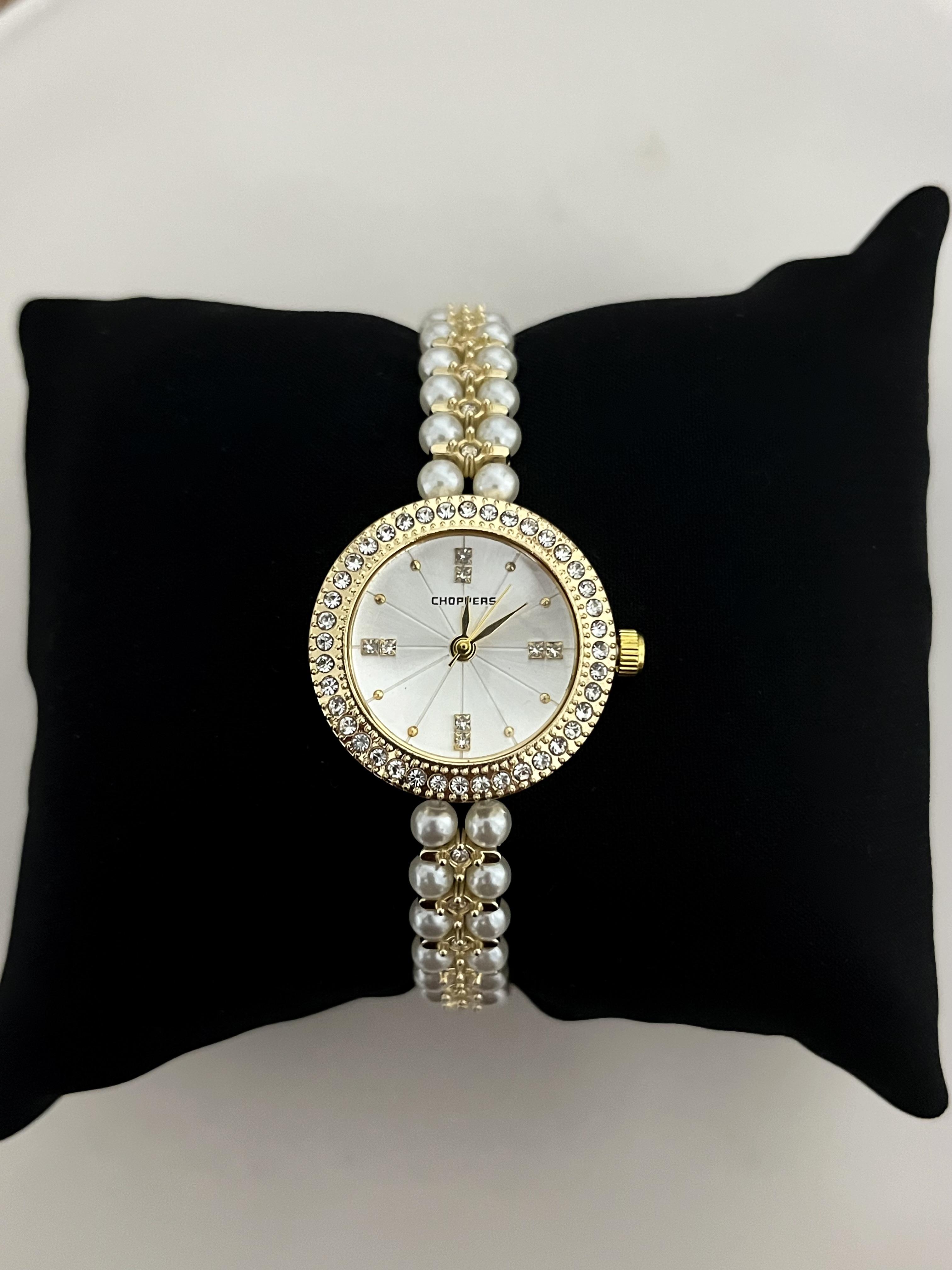 Gold Taş ve İnci Detaylı Yuvarlak Saat