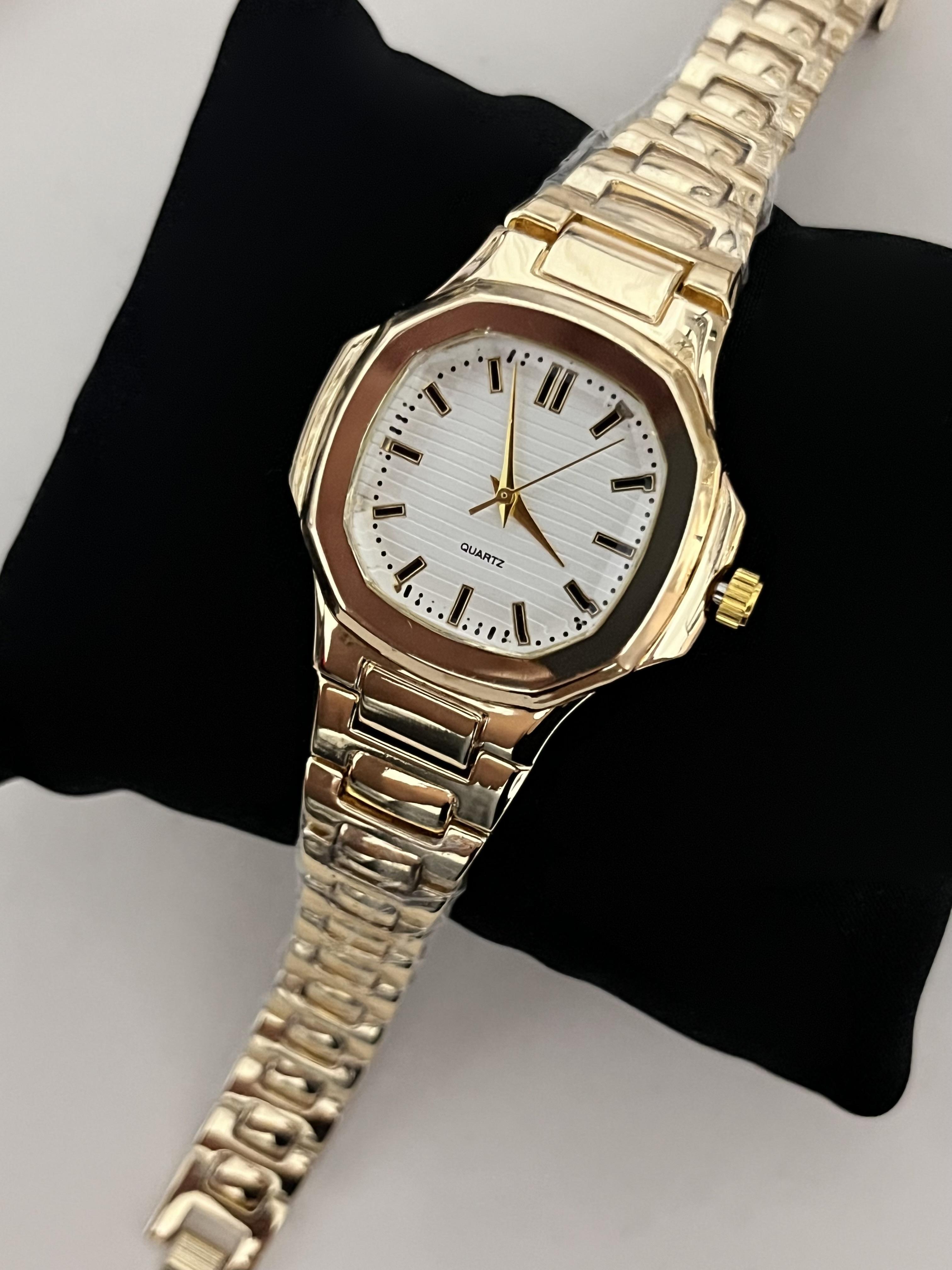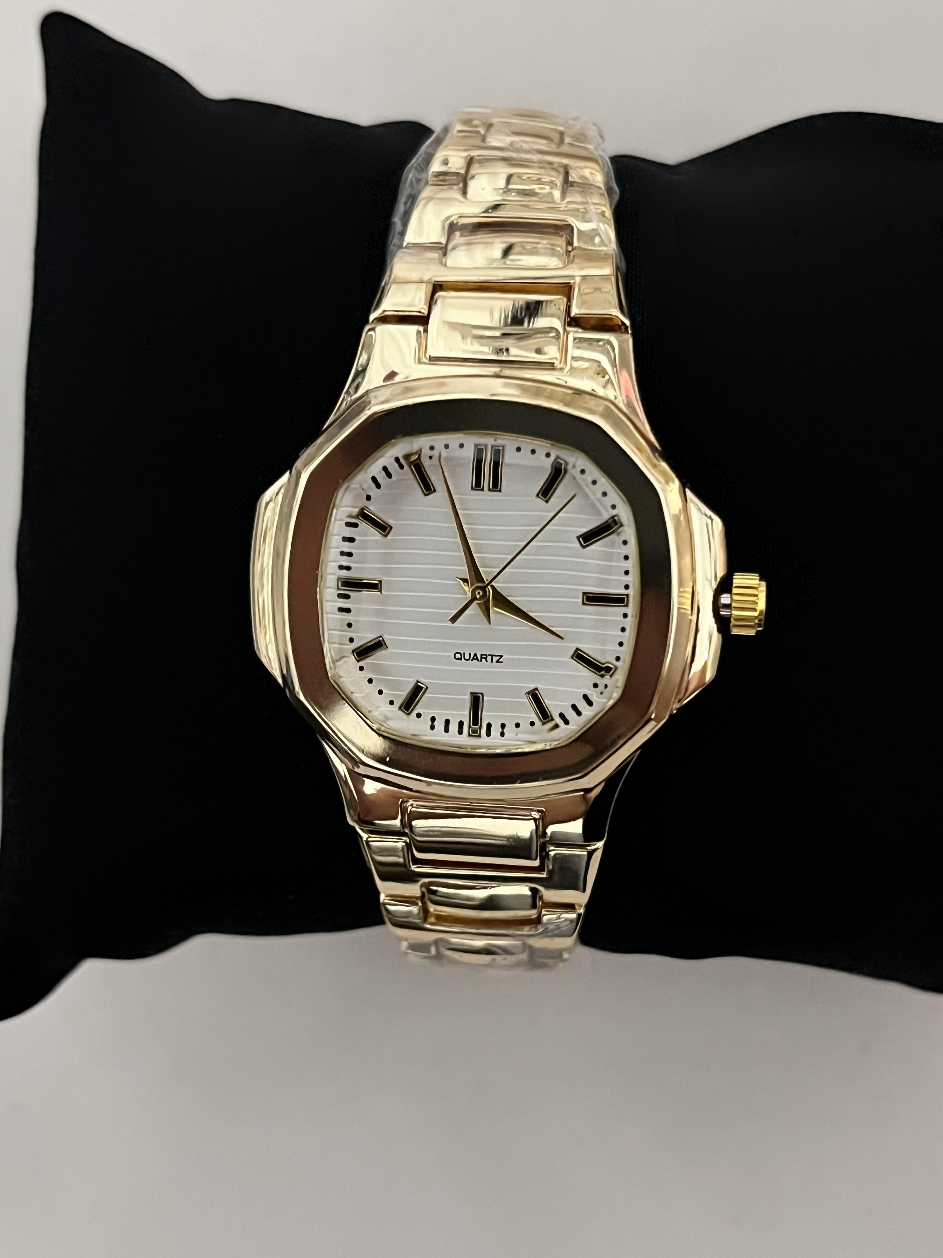 İçi Beyaz Kare Gold Saat