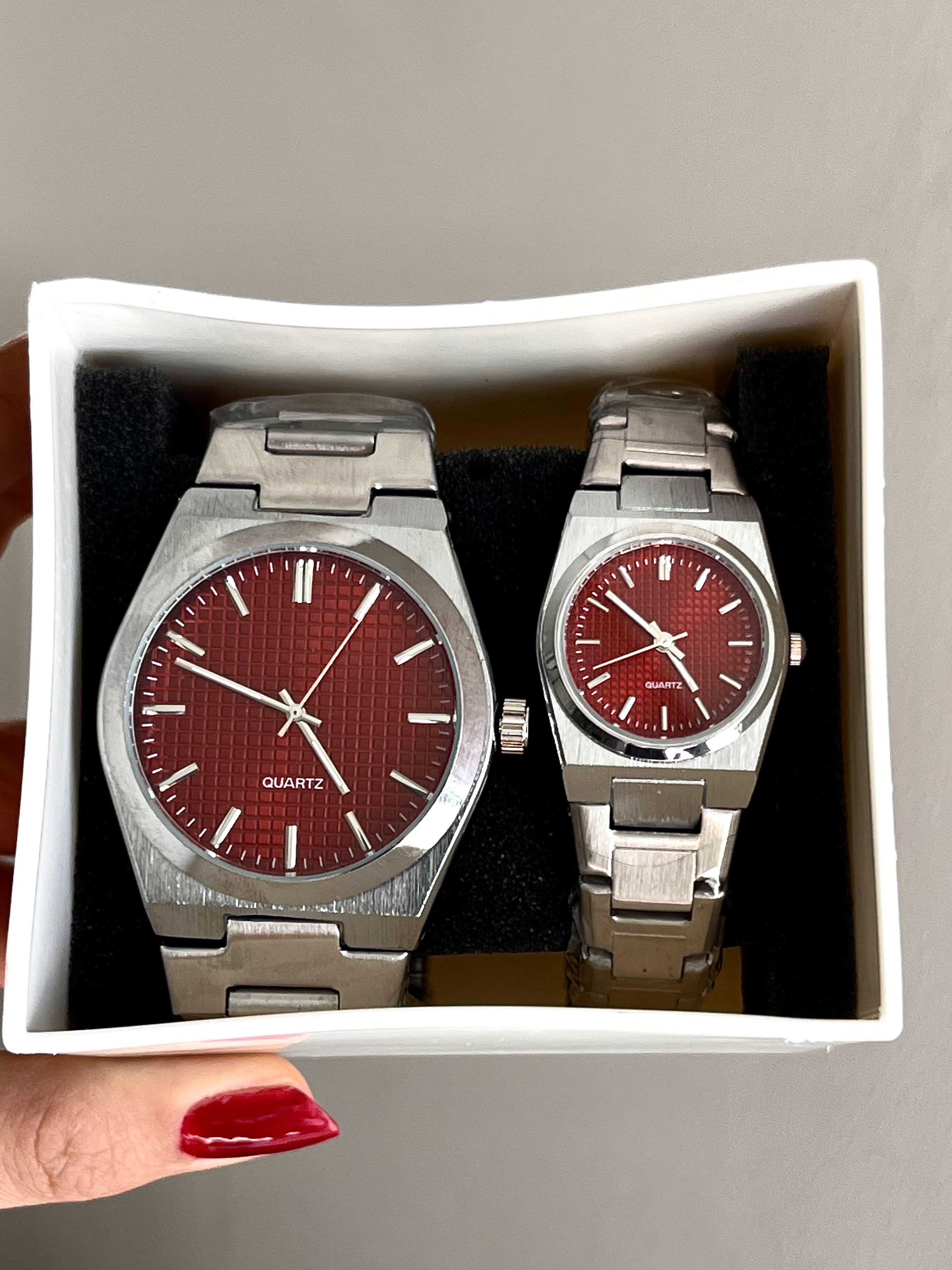 İçi Kırmızı Silver Çift Saati