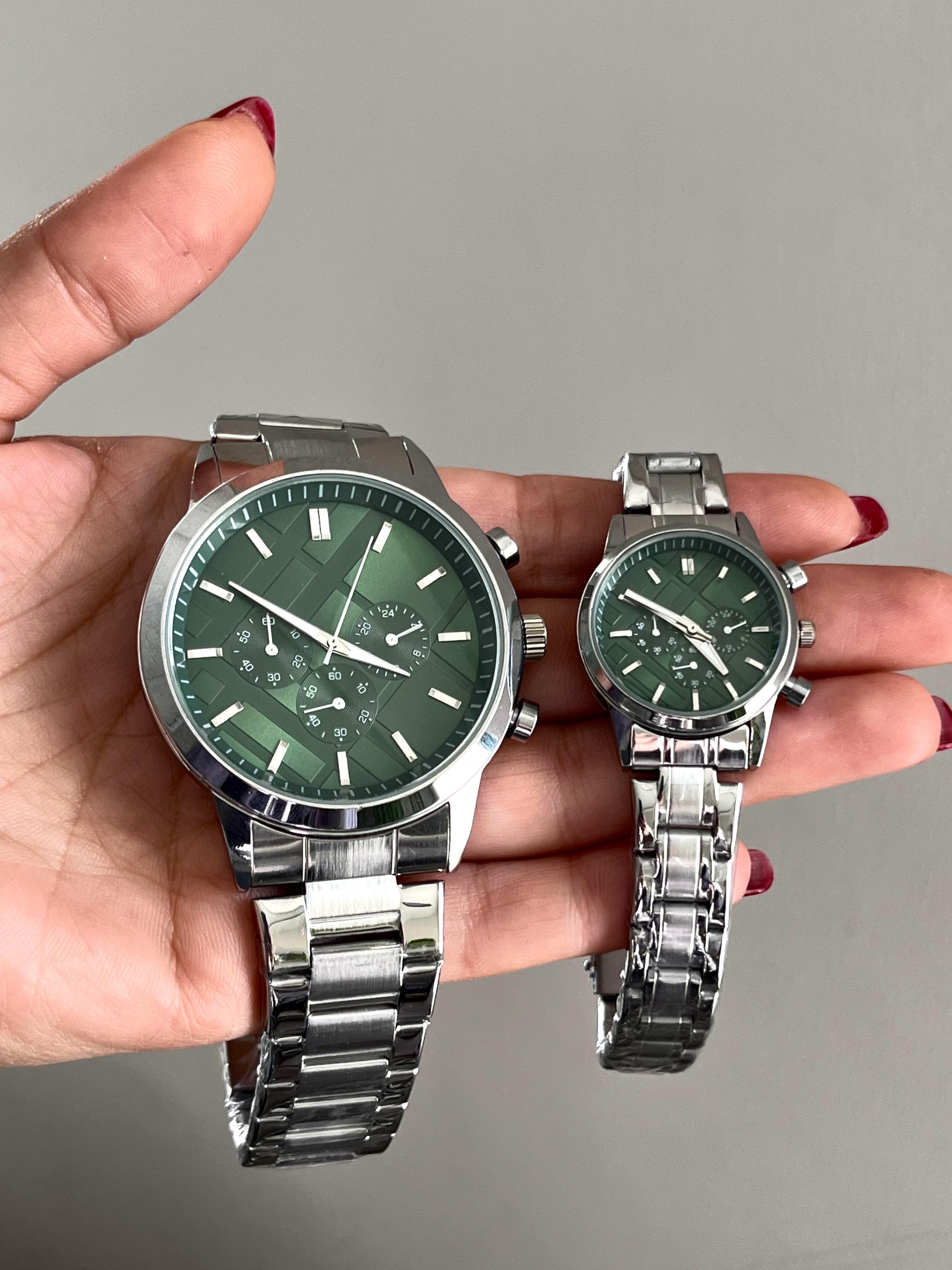 İçi Yeşil Takvimli Silver Çift Saati