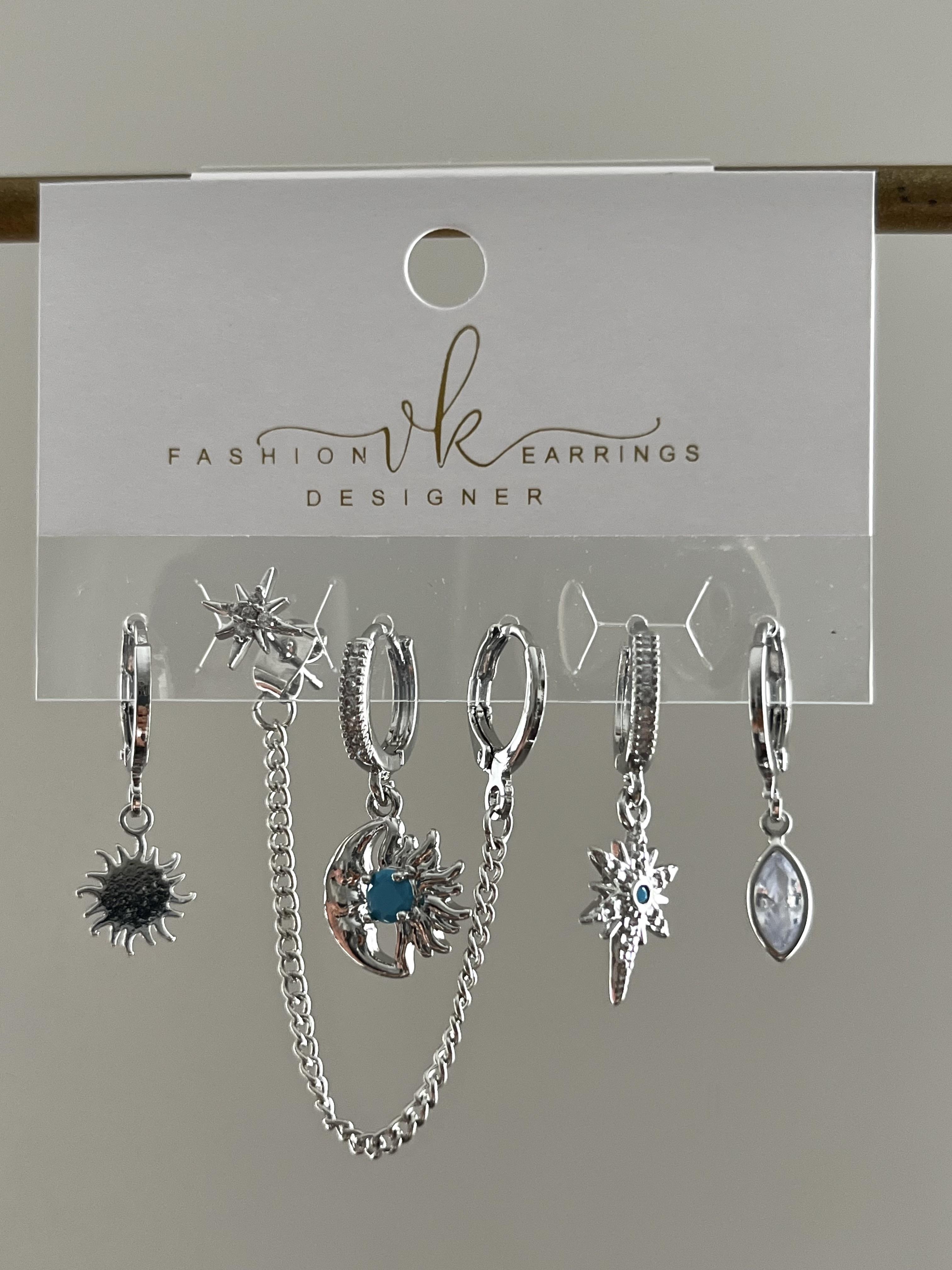 Silver 6’lı Mavi Ay-Güneş Küpe( ÇELİK DEĞİLDİR)